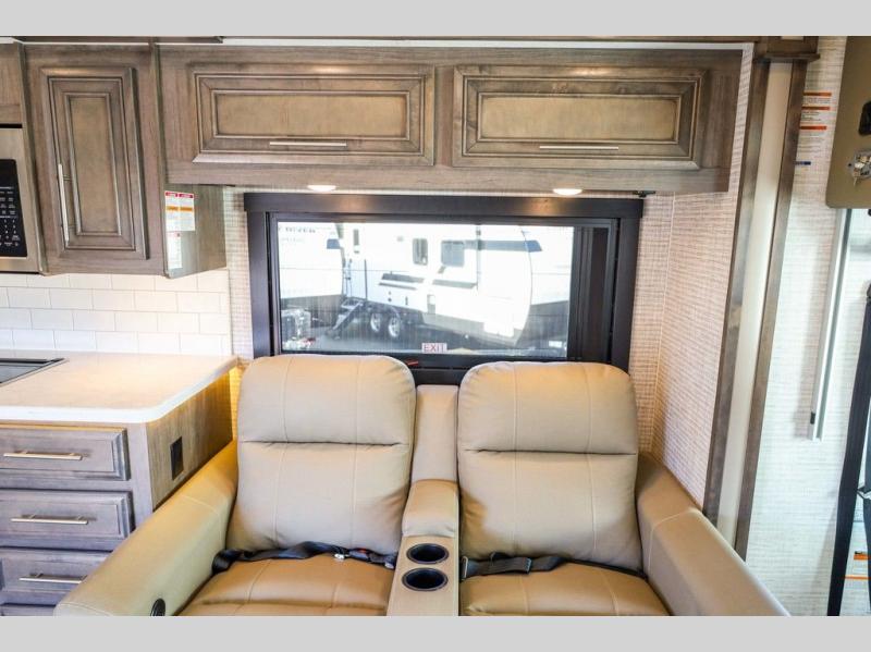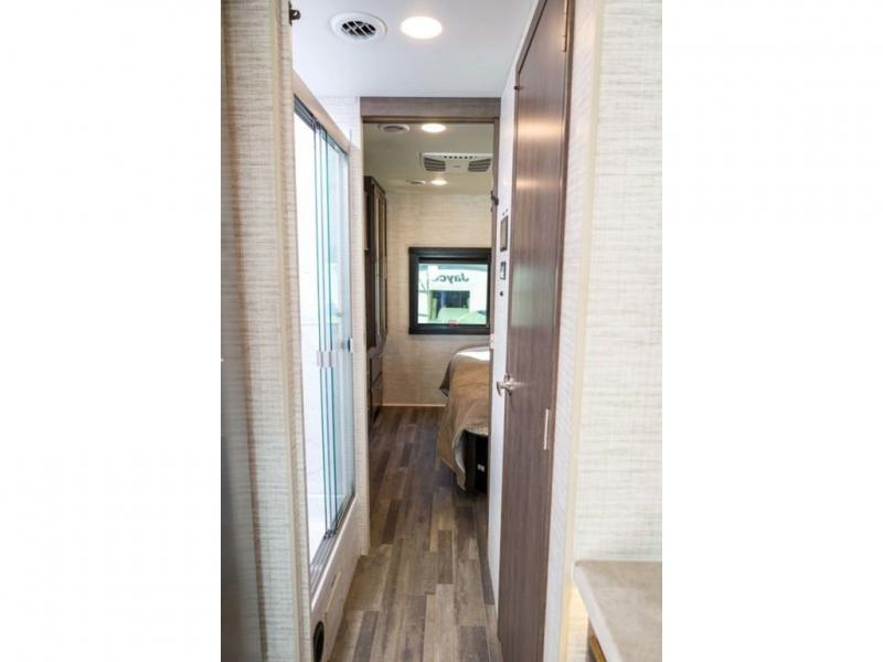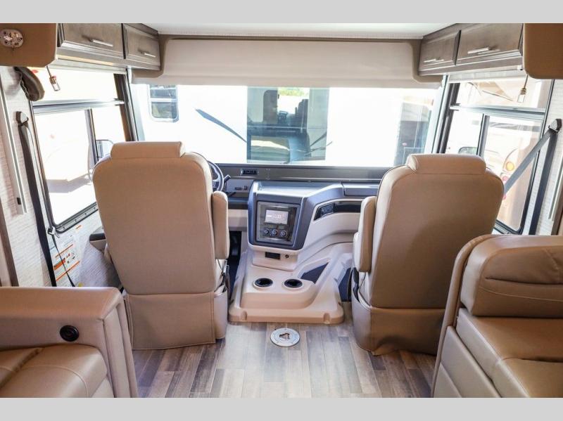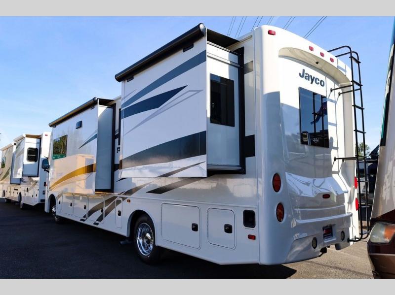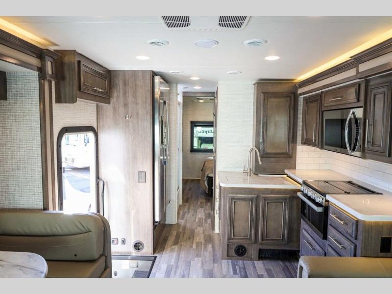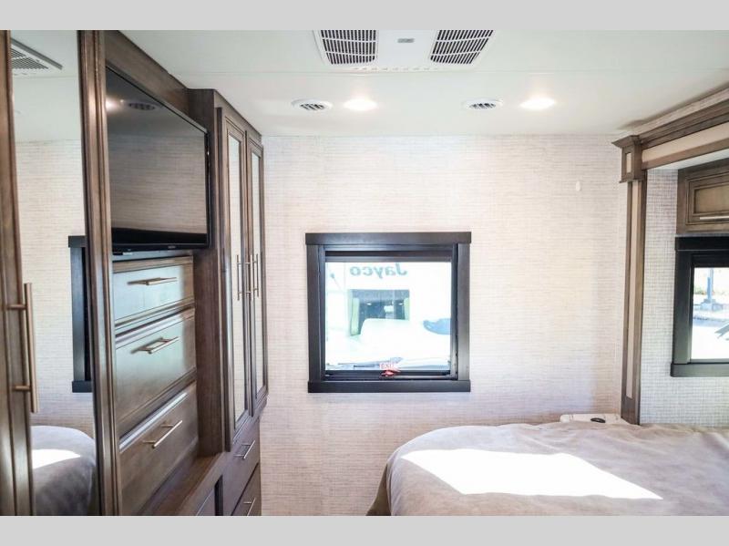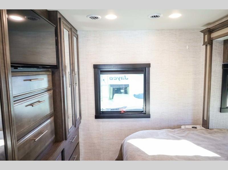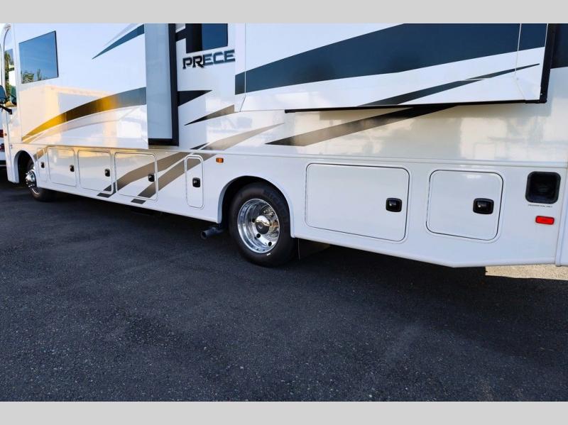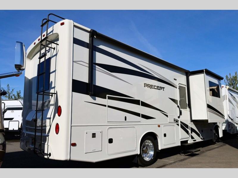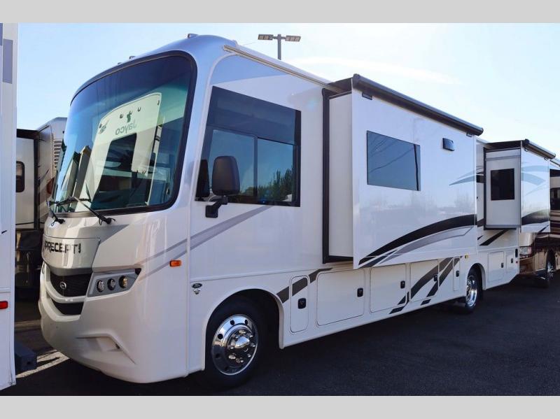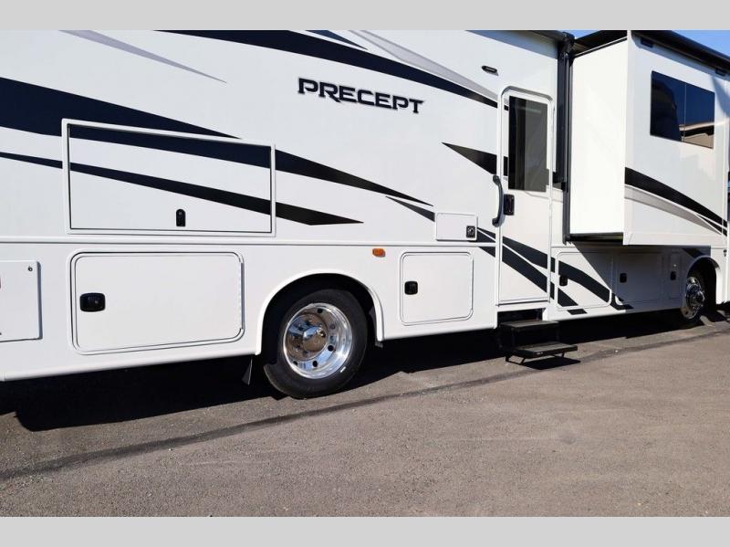 The Jayco Precept Class A gas motorhome comes with some features that you'll only find on a Jayco product, like the JRIDE PLUS which offers you a powerful blend of precise handling and renowned stability on the road and the Firefly total coach control system which allows you to control your coach's operations from just about anywhere with your phone. You'll find two-point lap seatbelts in all designated seating locations, and the one-piece, seamless fiberglass front and rear caps resist wear and tear over the years. The Precept also offers you the lightest yet strongest construction in the industry with the Stronghold VBL lamination on the roof, floor, and sidewalls. You'll also be very pleased to find a 120" panoramic windshield, automatic hydraulic leveling jacks, and a 5,500W generator with auto-gen start.