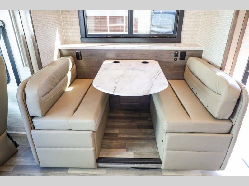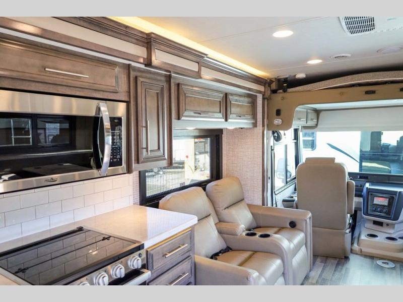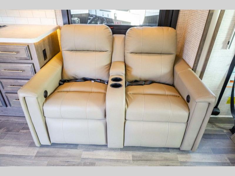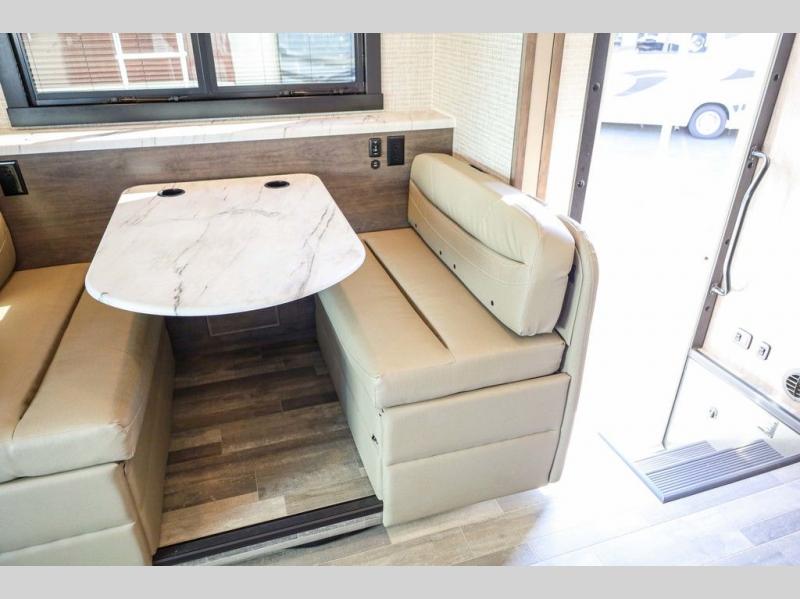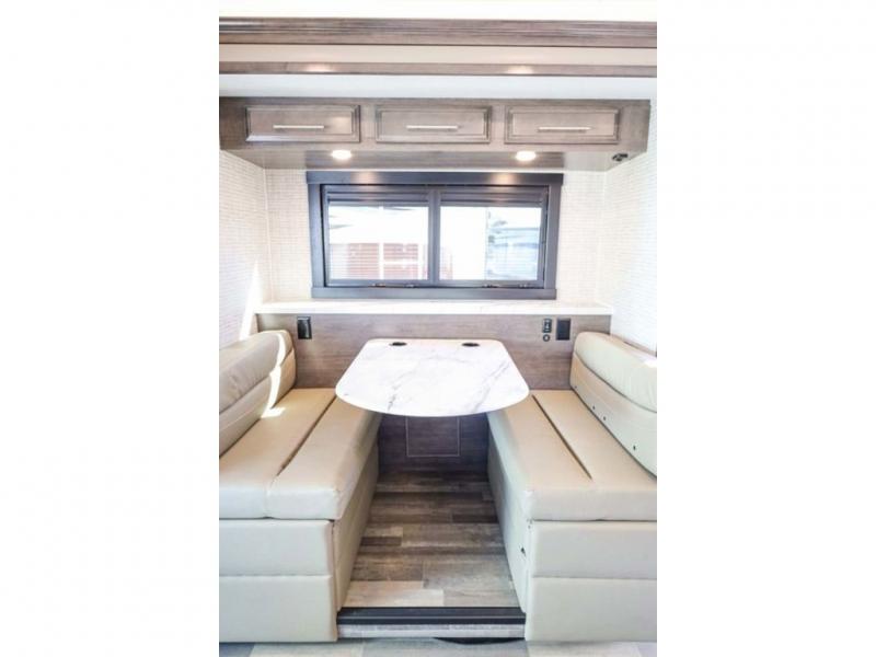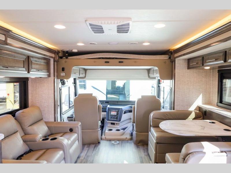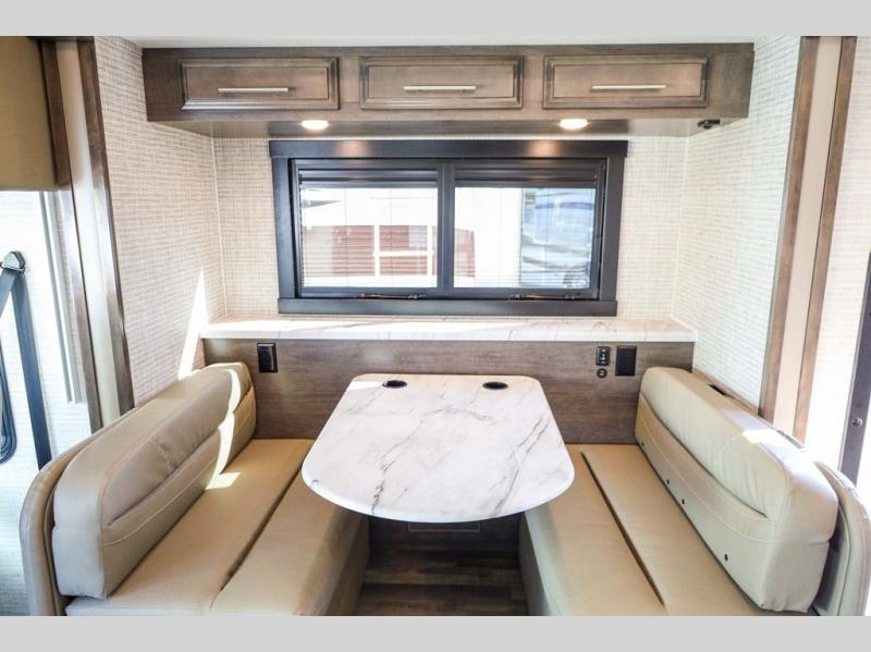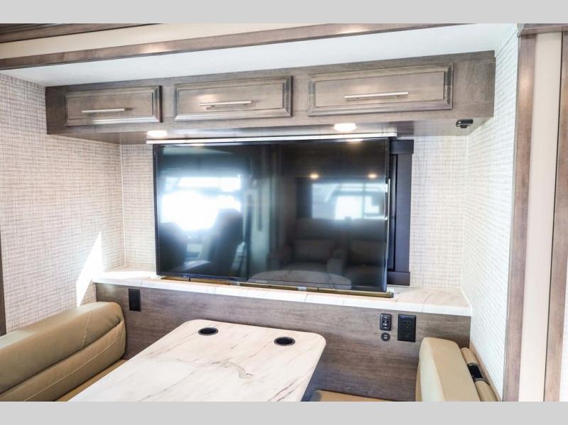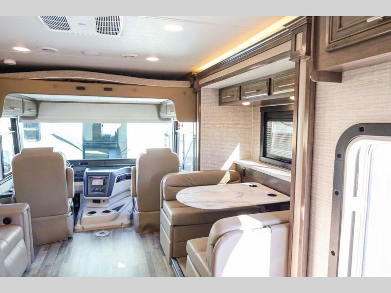 The fun is just about to begin with this Precept Class A gas motorhome! You will have an amazing night of sleep on the RV king bed slide back in the private bedroom, and the bedroom also offers you an LED TV to watch while you relax. The separated bathroom gives you a chance to have two people getting ready at the same time, and the opposing slides in the main living area provide some extra room for lounging or socializing. As you drive down the road, you'll appreciate the removable cockpit table that sits in between the swivel cab seats, and you can create some extra sleeping space by adding the optional drop-down overhead bunk in the cab.