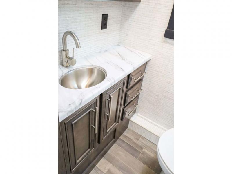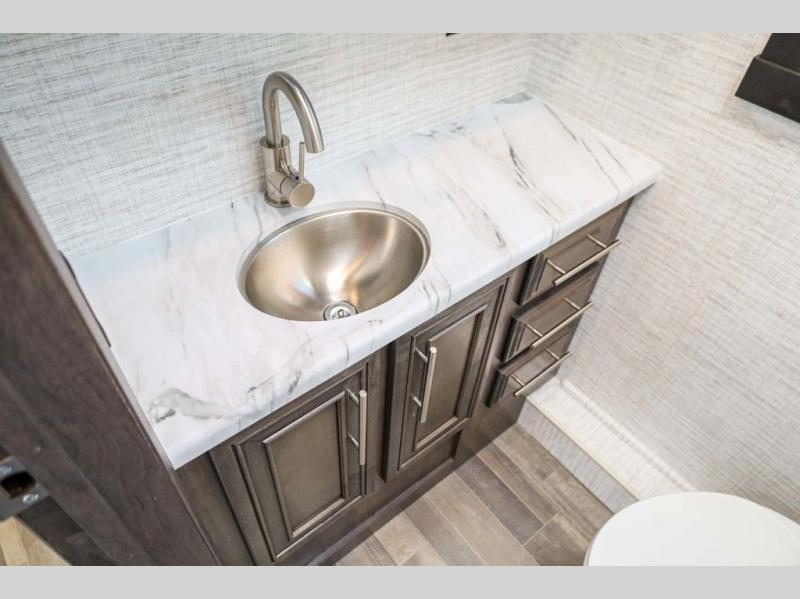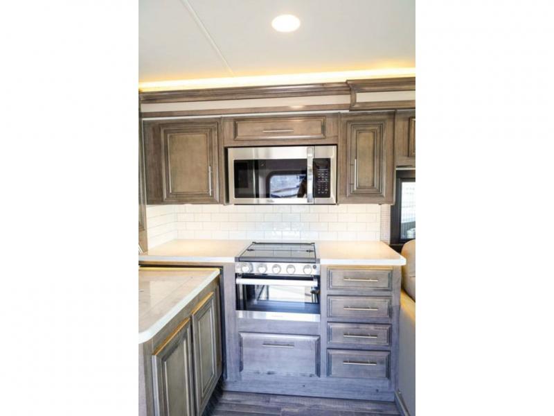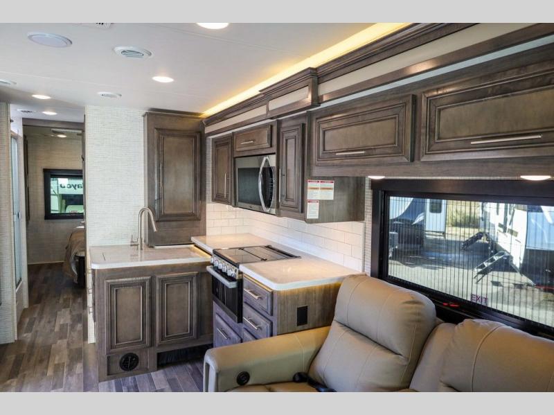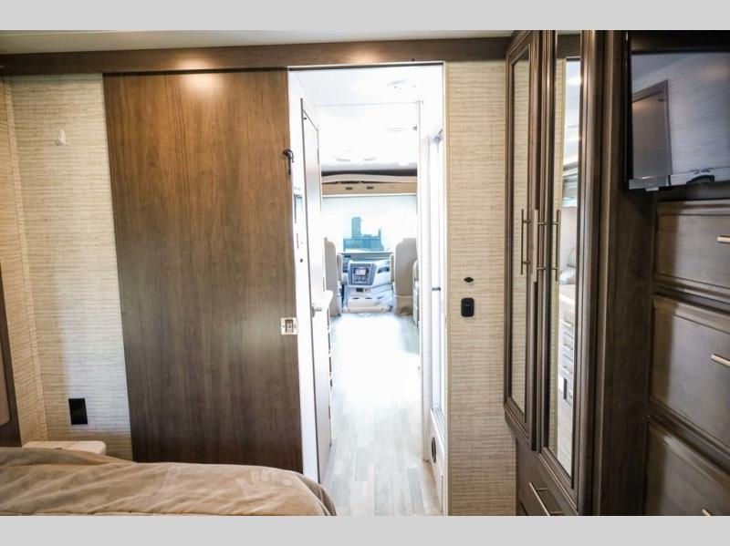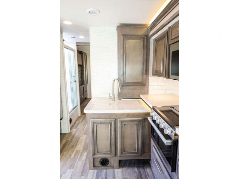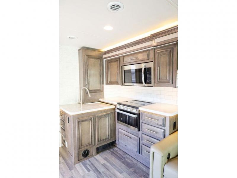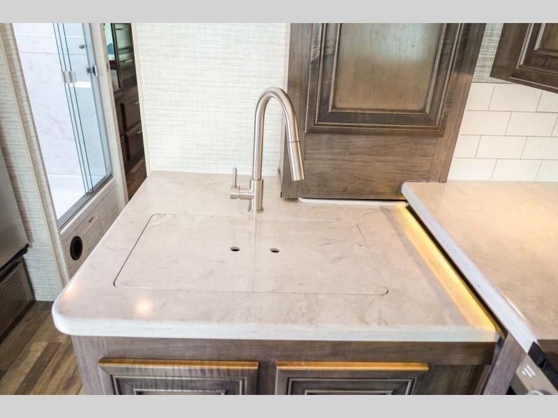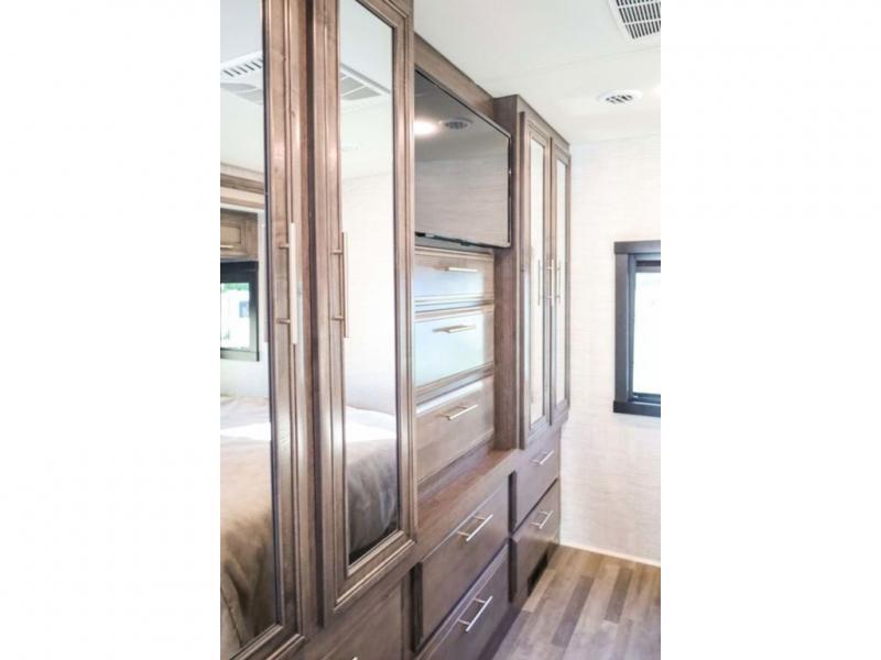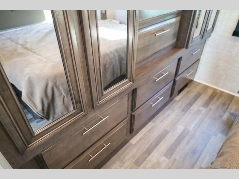 The fun is just about to begin with this Precept Class A gas motorhome! You will have an amazing night of sleep on the RV king bed slide back in the private bedroom, and the bedroom also offers you an LED TV to watch while you relax. The separated bathroom gives you a chance to have two people getting ready at the same time, and the opposing slides in the main living area provide some extra room for lounging or socializing. As you drive down the road, you'll appreciate the removable cockpit table that sits in between the swivel cab seats, and you can create some extra sleeping space by adding the optional drop-down overhead bunk in the cab.