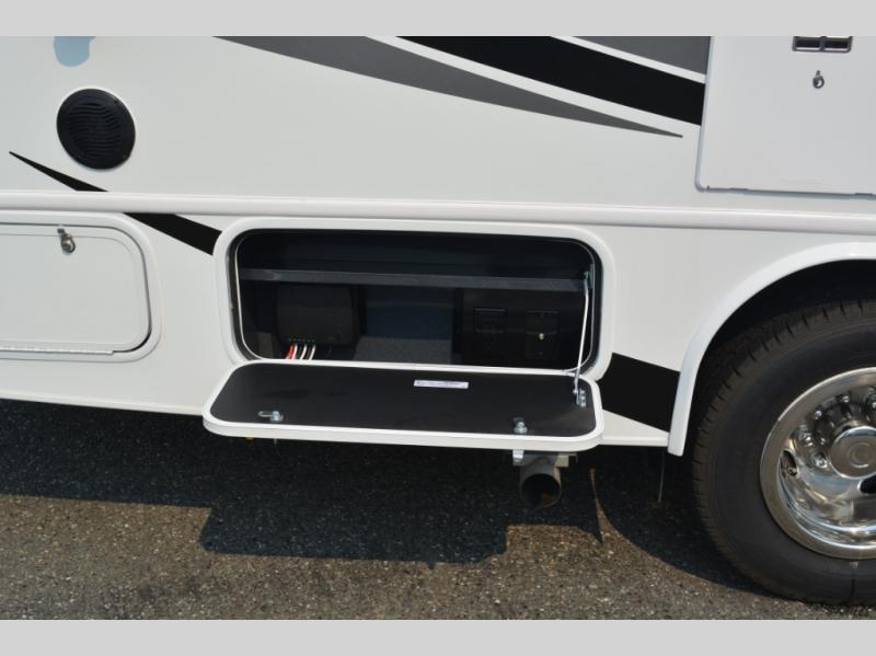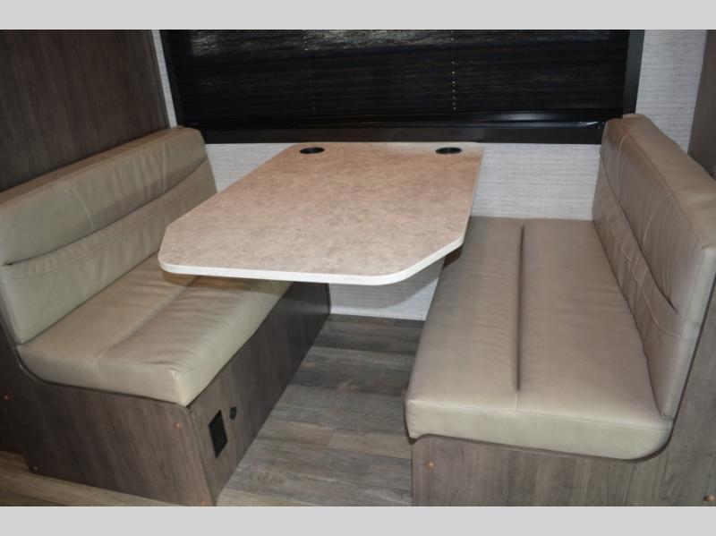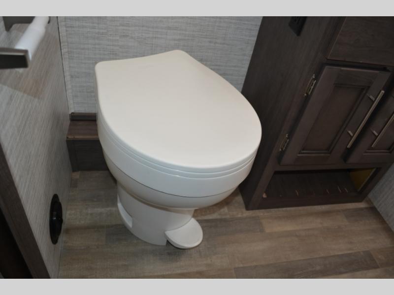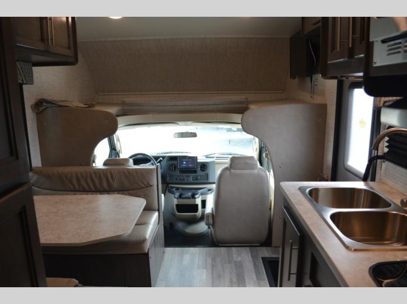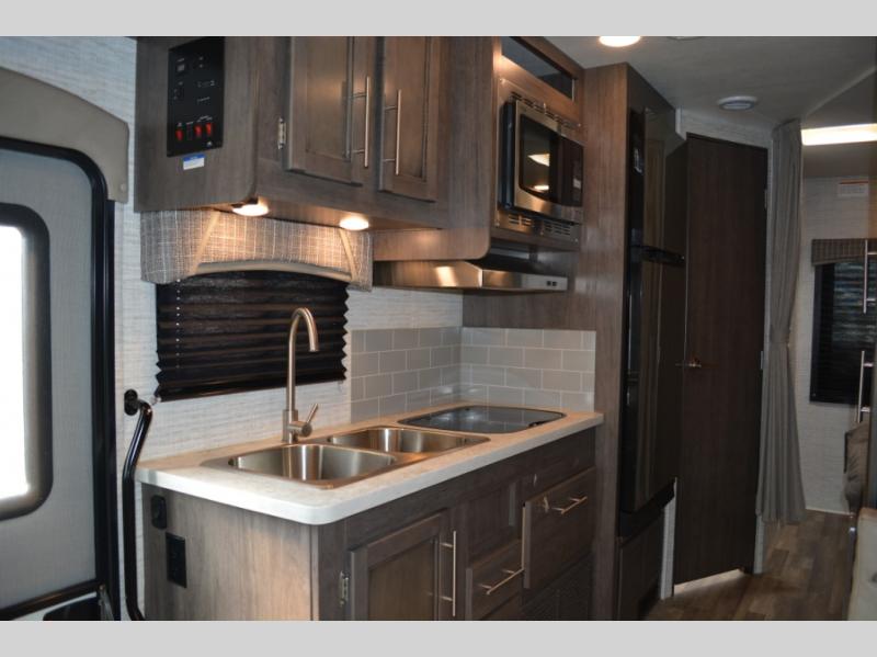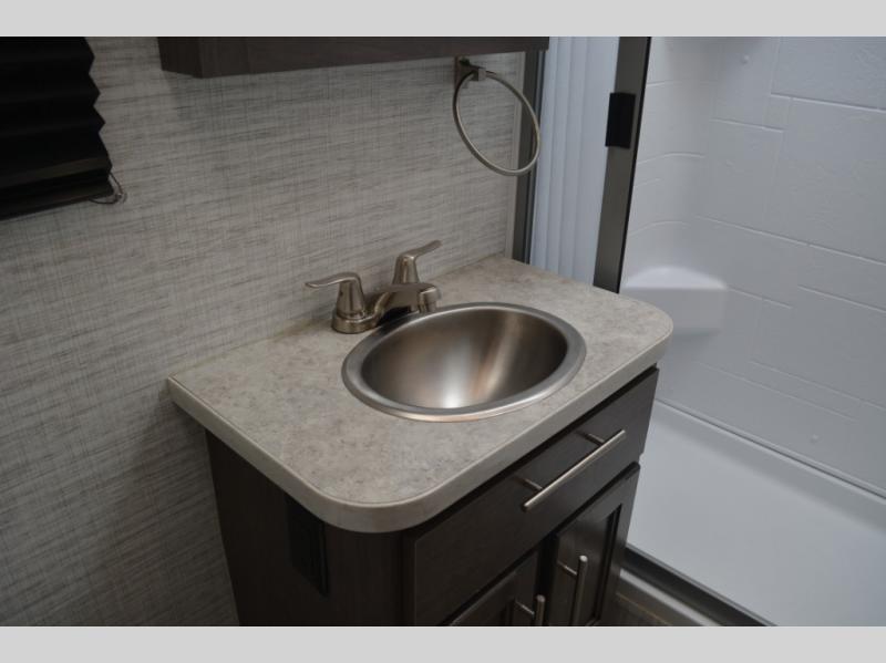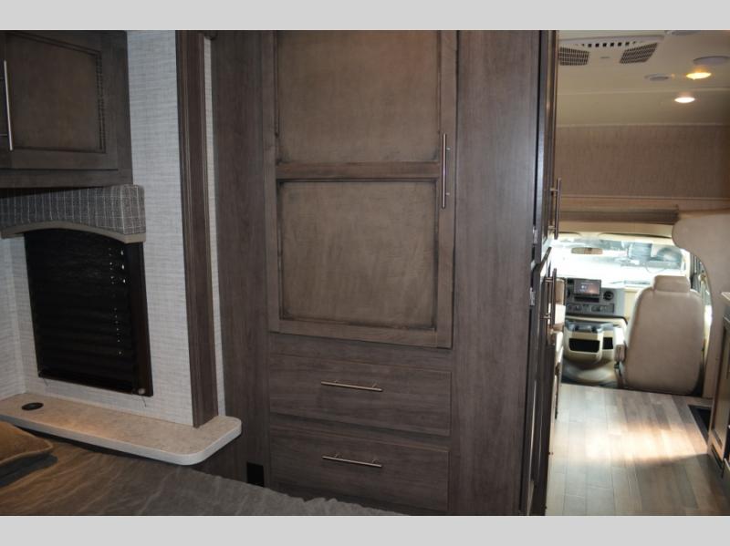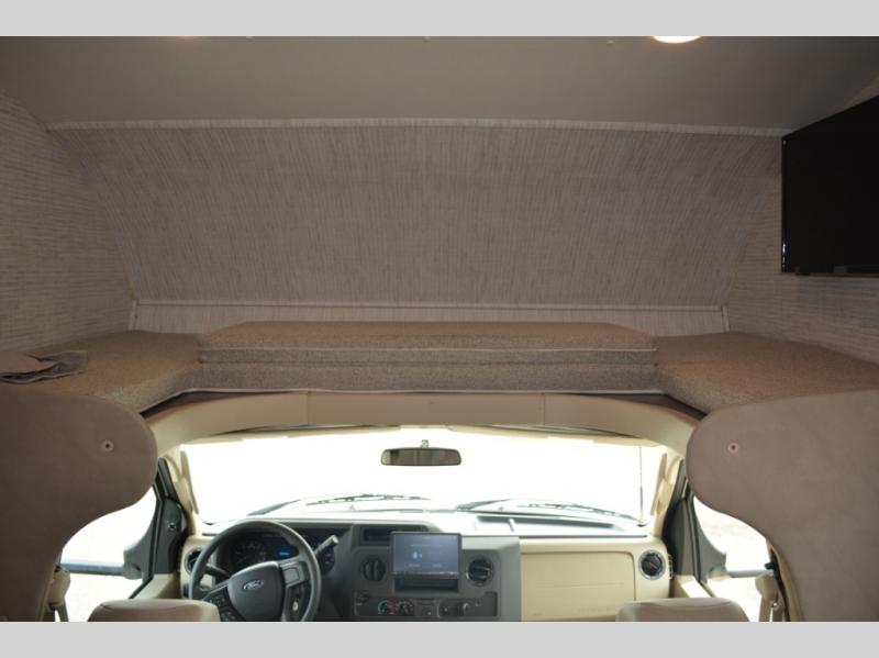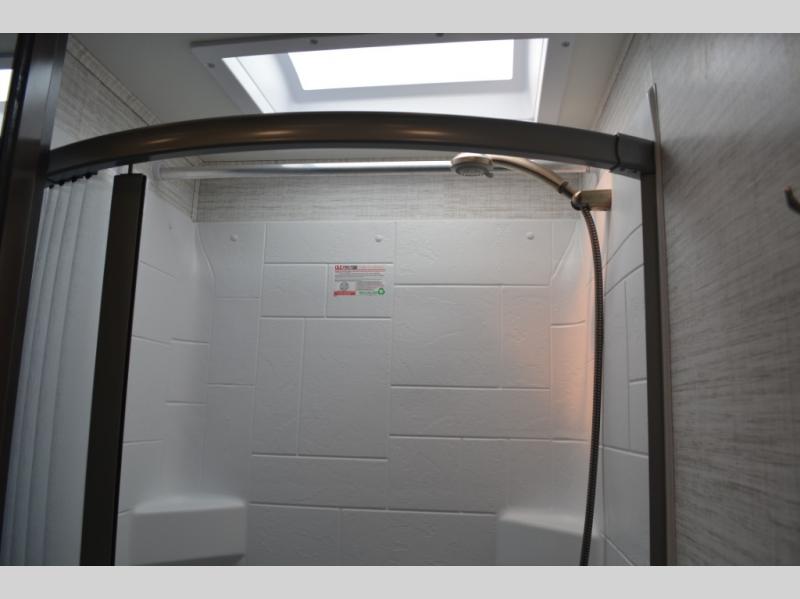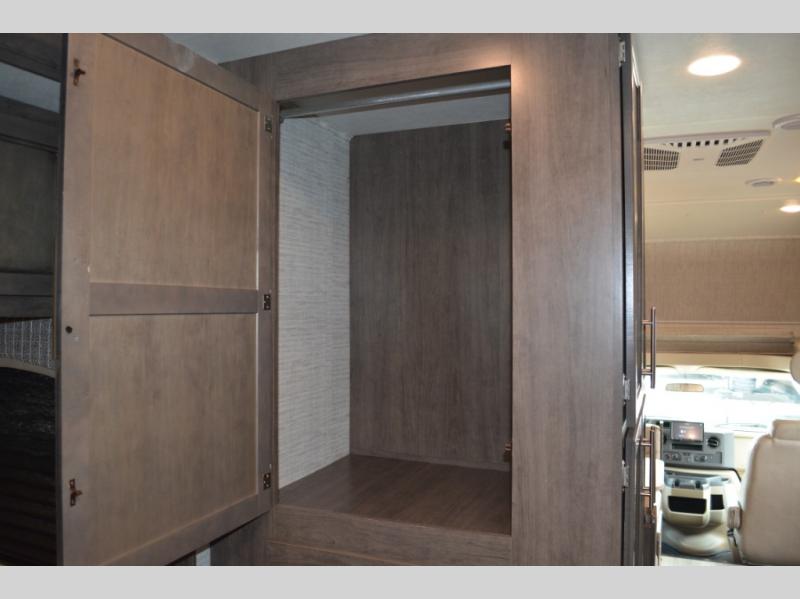 There's a comfortable place to sleep for everyone in this motorhome! From the corner 60" x 70" queen bed that slides out to the bunk over cab, and even the 42" x 70" booth dinette once converted. You can store your favorite snacks and hang up your clothes in the wardrobe/pantry. The chef can prepare delicious meals with the two burner cooktop and if there happens to be any leftovers then they can be stored in the 10 cu. ft. 12V refrigerator. The rear corner bathroom has a 24" x 36" shower that you are sure to enjoy after a long day of traveling!