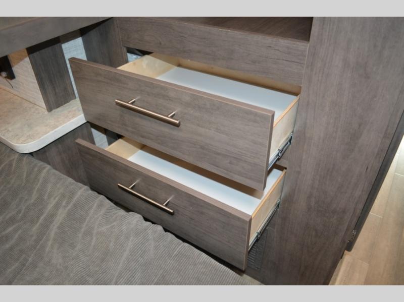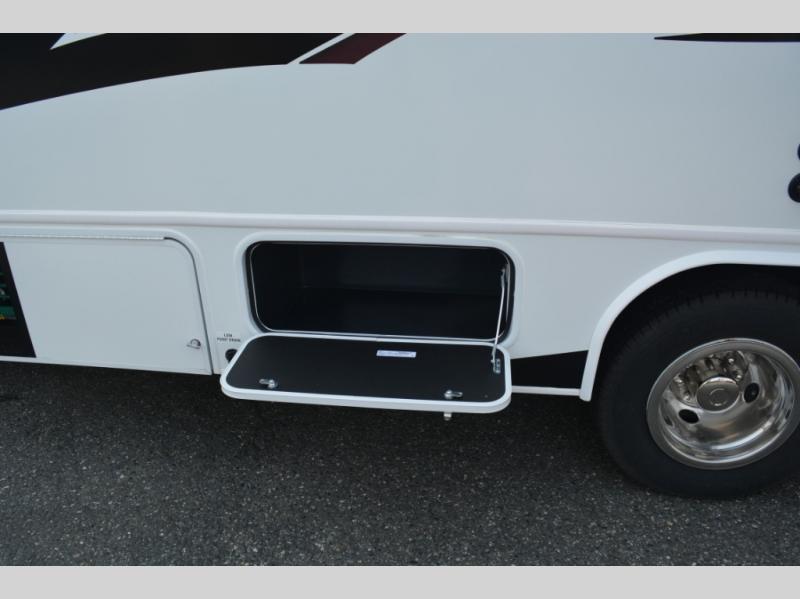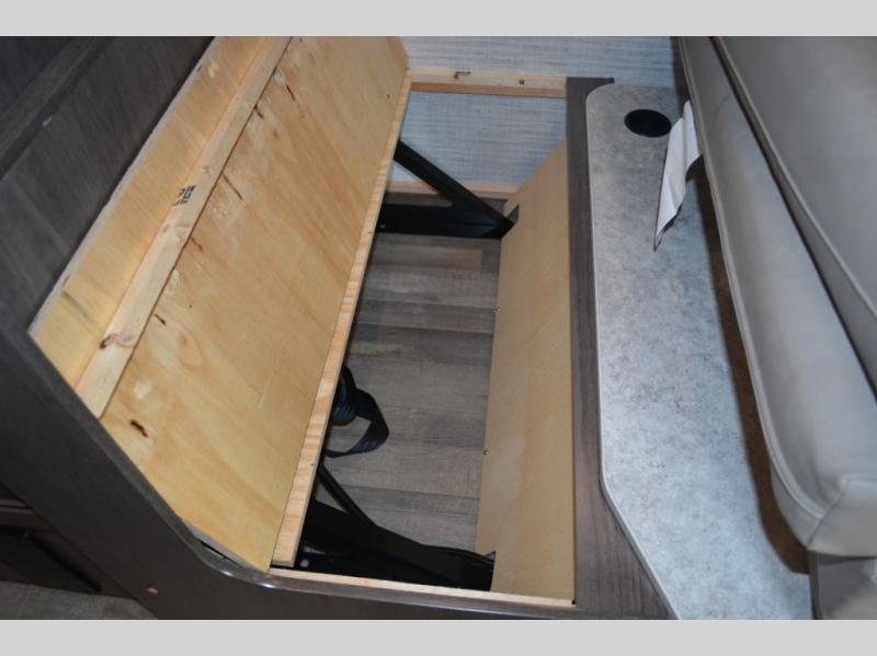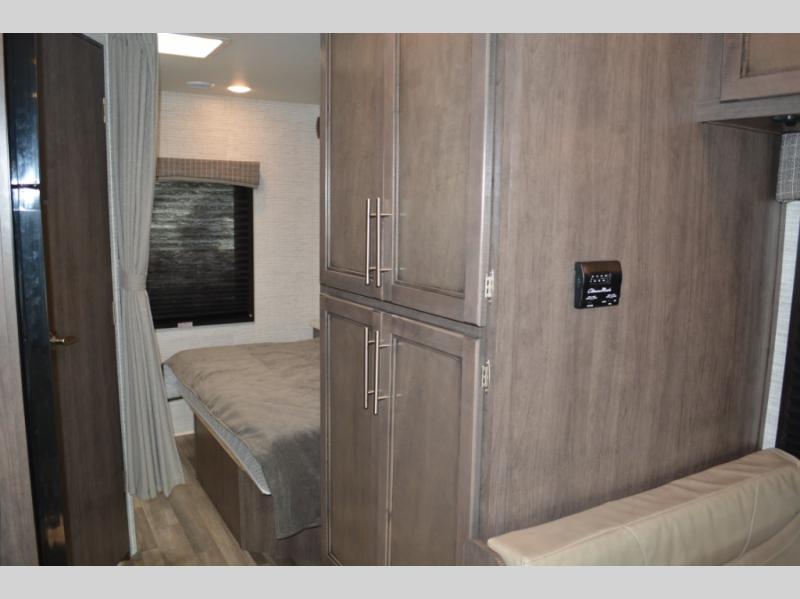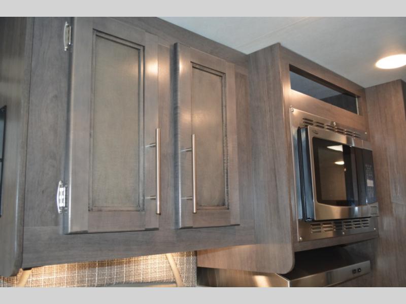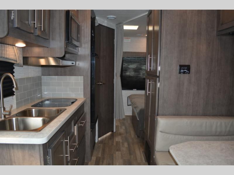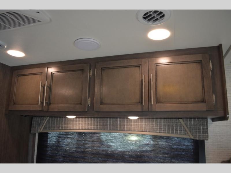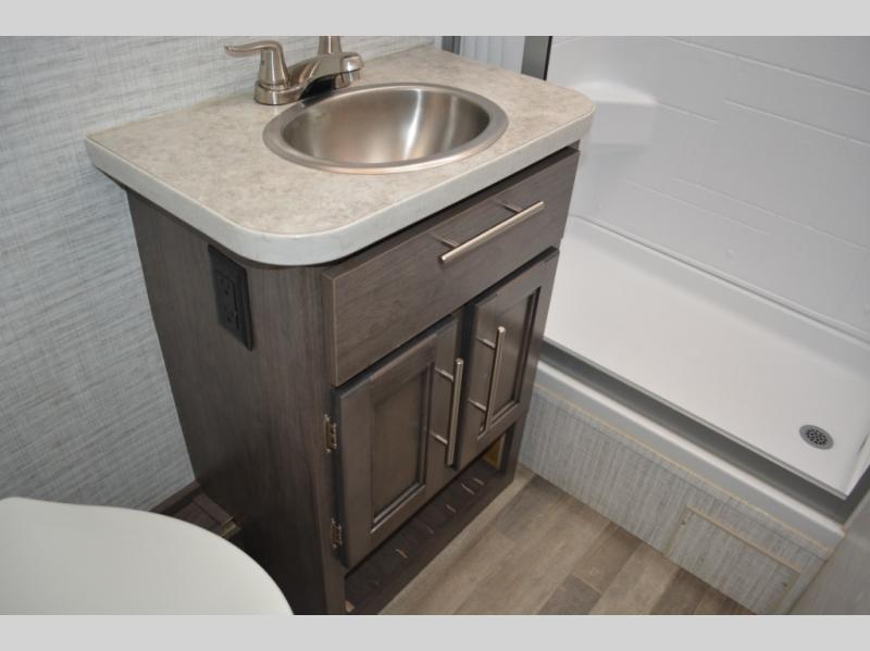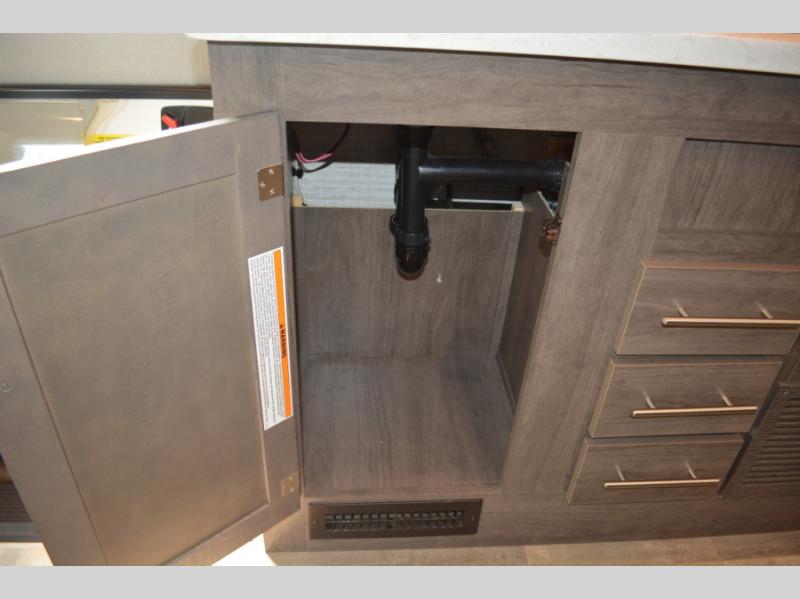 There's a comfortable place to sleep for everyone in this motorhome! From the corner 60" x 70" queen bed that slides out to the bunk over cab, and even the 42" x 70" booth dinette once converted. You can store your favorite snacks and hang up your clothes in the wardrobe/pantry. The chef can prepare delicious meals with the two burner cooktop and if there happens to be any leftovers then they can be stored in the 10 cu. ft. 12V refrigerator. The rear corner bathroom has a 24" x 36" shower that you are sure to enjoy after a long day of traveling!