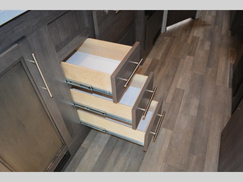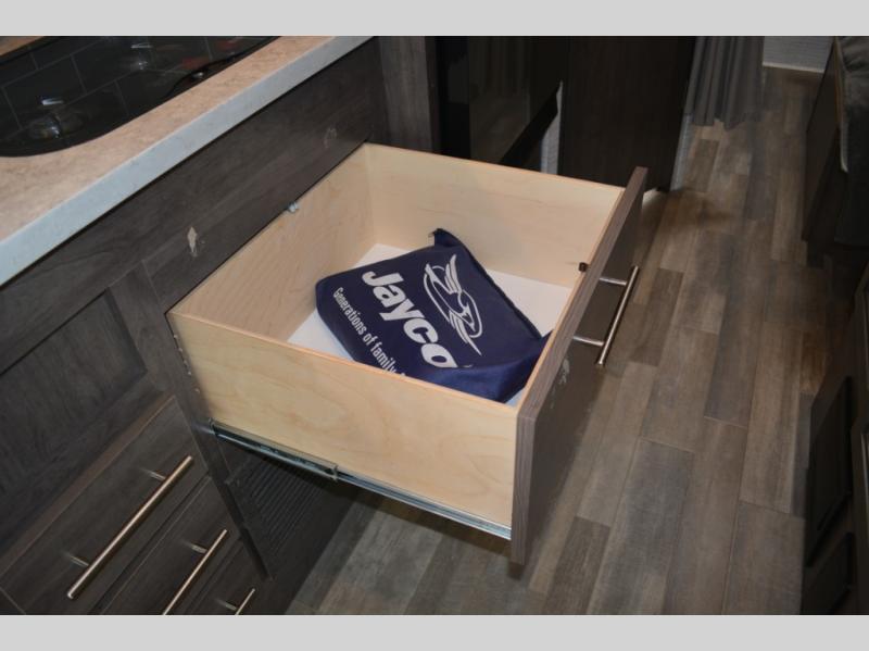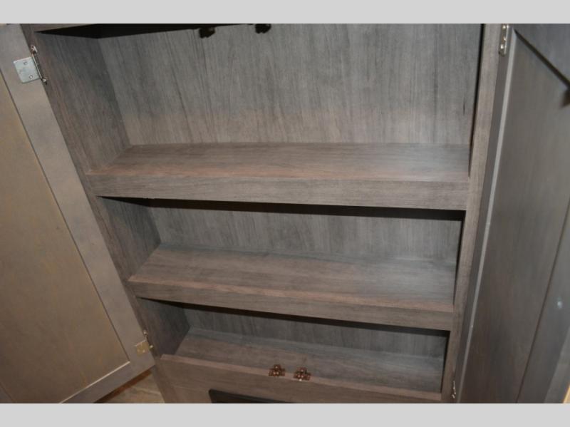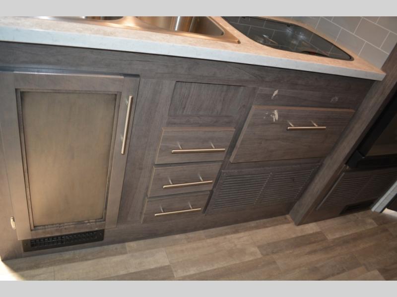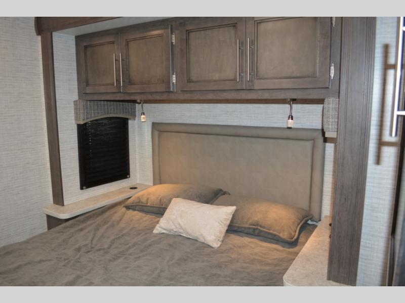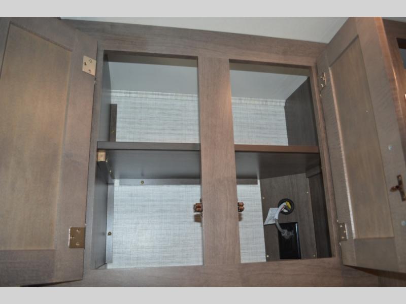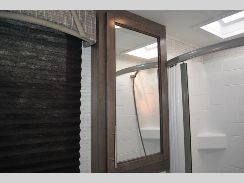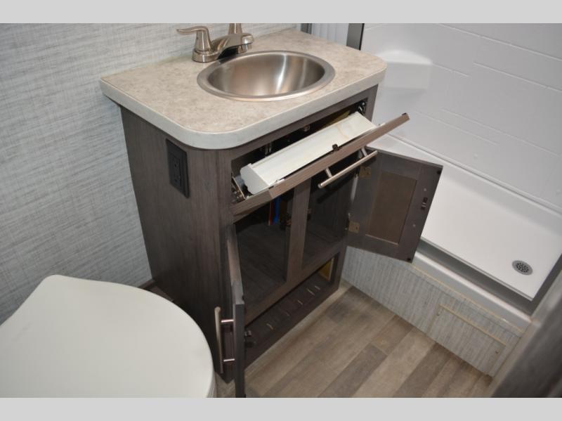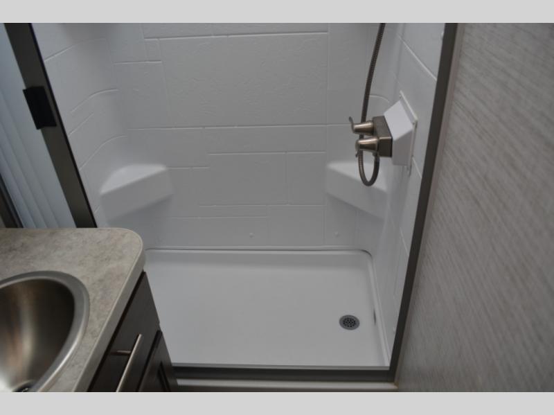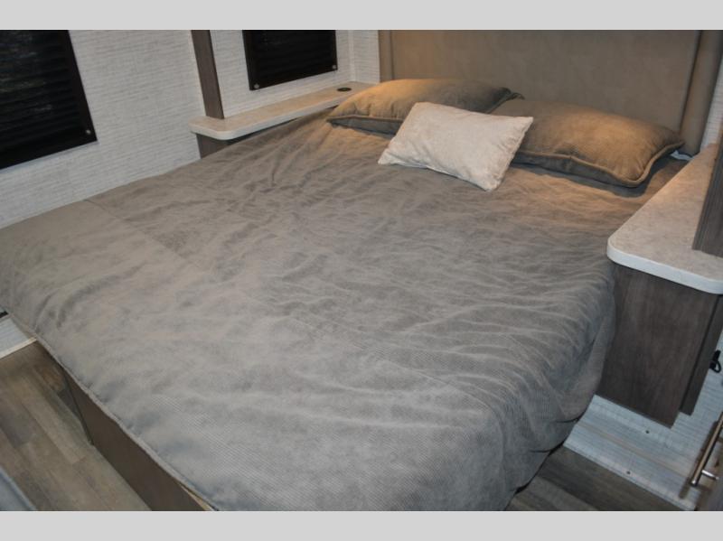 There's a comfortable place to sleep for everyone in this motorhome! From the corner 60" x 70" queen bed that slides out to the bunk over cab, and even the 42" x 70" booth dinette once converted. You can store your favorite snacks and hang up your clothes in the wardrobe/pantry. The chef can prepare delicious meals with the two burner cooktop and if there happens to be any leftovers then they can be stored in the 10 cu. ft. 12V refrigerator. The rear corner bathroom has a 24" x 36" shower that you are sure to enjoy after a long day of traveling!