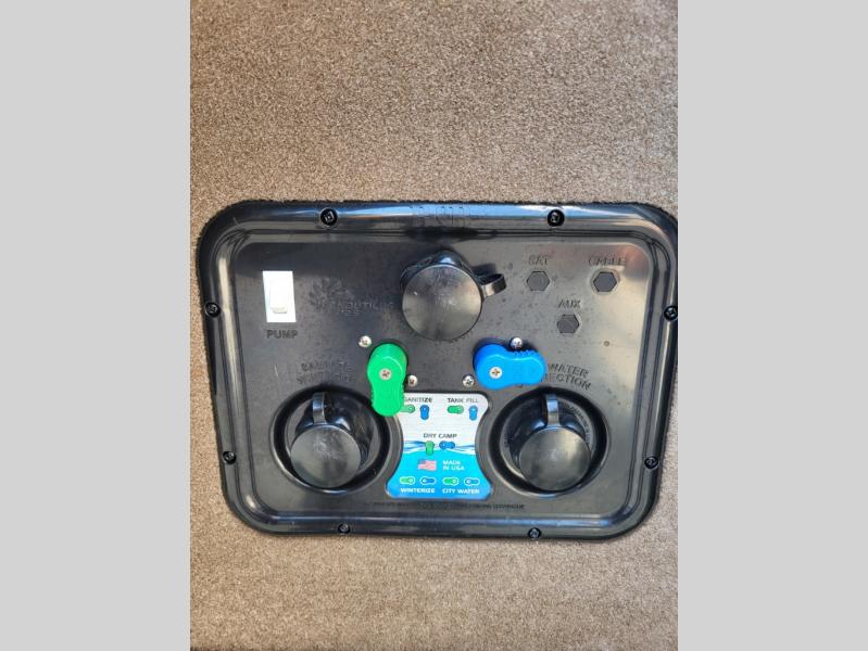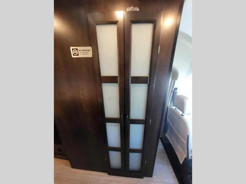 This couple's coach is ready to hit the road when you are! The rear 68" wide power sofa comes with a Lagun table mount to enjoy your meals at that were prepared with the two burner gas cooktop, convection microwave, and 5.3 cu. ft. refrigerator. If you want to eat a quick bite of food to get back on the road fast then simply swivel around from the captain and passenger chairs and set up the fold down table and second table. Wash the travels away in the 25" x 46 3/4" wet bath with a magnetic curtain surround and Aqua View SHOWERMI$ER water management system to keep your water usage low. When you're ready for a good night's rest then convert the sofa into a 68" x 76" bed!