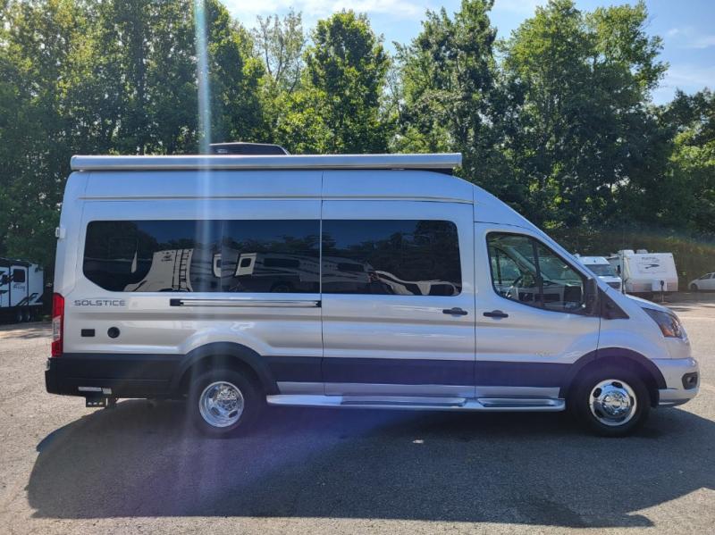 Travel in luxury with the Jayco Solstice Class B gas motorhome! The Ford Transit AWD 350HD chassis and 3.5L EcoBoost V6 310HP engine will take you to all of your favorite destinations. The rear view camera with trailer hitch assist, Advance Trac with roll stability control, and SOS Post Crash Alert system will keep you safe on every journey. Bring fresh air inside with the sliding vented windows and the side screen door with magnetic and zipper close offs. The mandatory Customer Value package includes JRide for a smooth ride, a Carefree® armless motion sensing patio awning with LED light strip, a Truma Combi Eco Plus water heater and furnace, and Winegard® Connect 2.0 4G/Wi-Fi/digital TV antenna to stay connected every where you go. You might also like to add the optional Li Package that comes with a 48V-210 amp hour smart lithium battery that provides 10Kw hours of power, a 3,500W inverter, a one burner induction cooktop, and more features to make off-grid easier than ever!