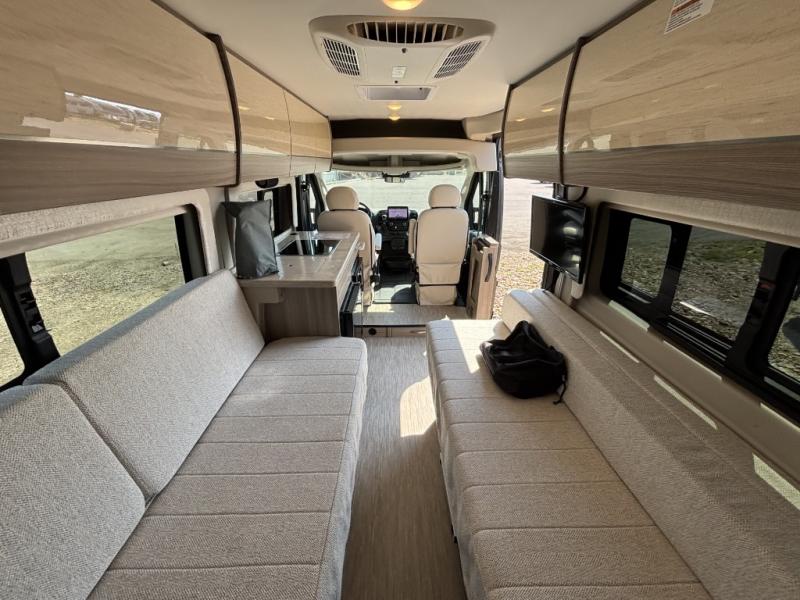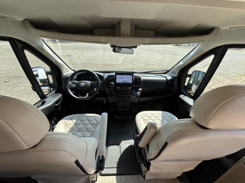 Head out on your greatest adventures with one of these Jayco Swift Class B gas motorhomes! Off-grid camping is made hassle-free with the 200-watt roof-mounted GoPower solar panel, plus there is an Onan 2800W generator with auto-gen start for all your other power needs. Each model includes the JRide system with Hellwig helper springs and a premium heavy-duty suspension for smooth handling, and the Thule armless patio awning with LED lights will create an outdoor living space you are sure to love. Head inside to find a solid surface kitchen countertop with a pull-out extension, four sliding vented windows, a soft-touch vinyl ceiling, plus many more comforts. The Uconnect 5 NAV infotainment center with Apple CarPlay® and Android Auto™ will also come in handy as you travel to your destination!