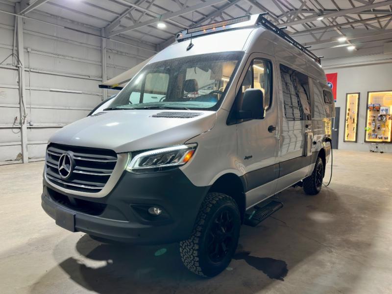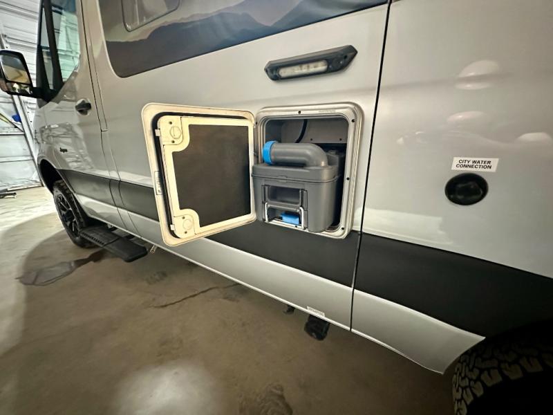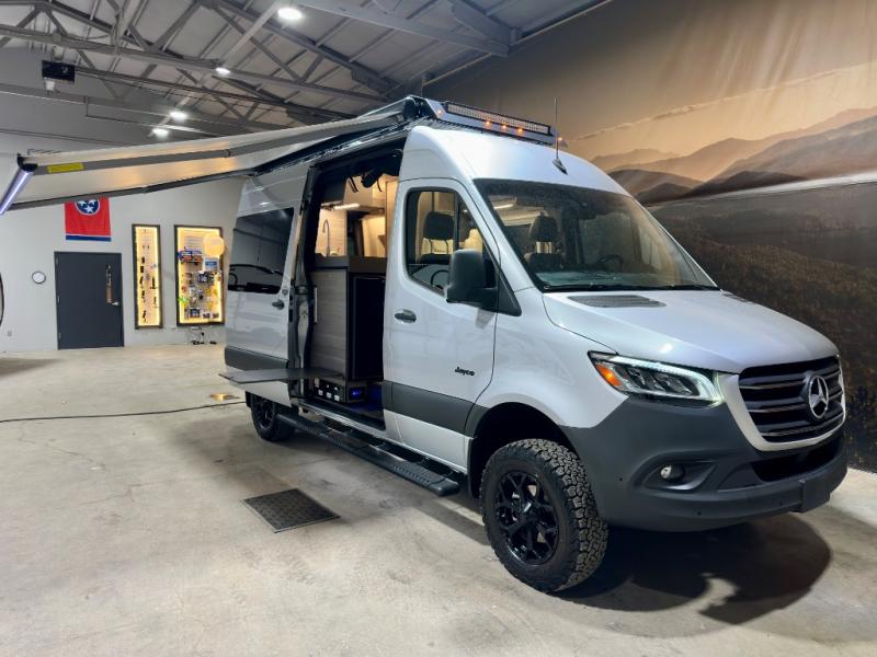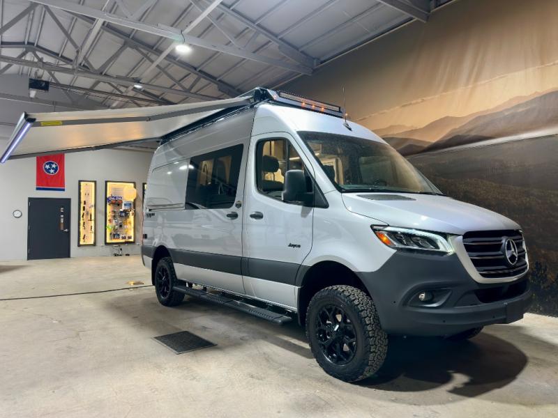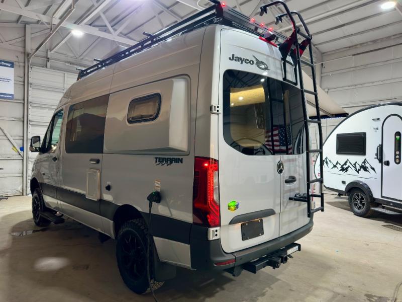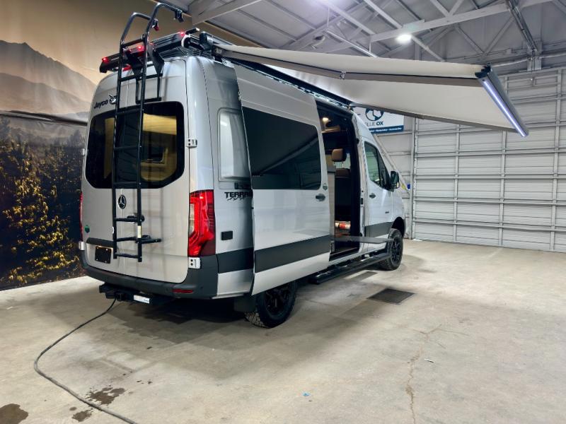 The Jayco Terrain Class B diesel motorhome is just waiting for you to hit the trails with it! The Mercedes-Benz Sprinter 2500 AWD chassis will provide an outstanding driving experience, plus there is a 9-speed transmission and a 2.0L 4-cyliner diesel engine with 211HP and 332 ft.-lb. of torque to power your adventures. You will appreciate the added safety features, such as active lane keeping assist, attention assist, and the parking package with a 360° camera that will help keep you stay safe on the road. This coach includes a 48V-210 amp hour smart lithium battery that provides 10kW of hours of power when you're off-grid, and when you're back at camp, you can check in using the Starlink satellite internet system. The Tecnoform European-style cabinetry is ultra stylish and the durable rubber floor will withstand your spontaneous van life. And don't overlook the exterior with its Carefree armless awning with an LED light, a double roof rack and moveable roof ladder, a fold-down exterior table, and more!