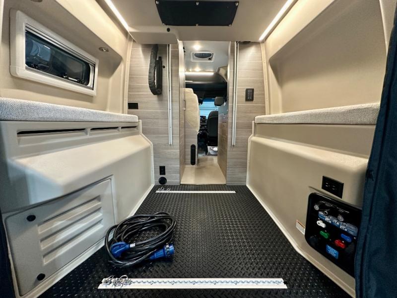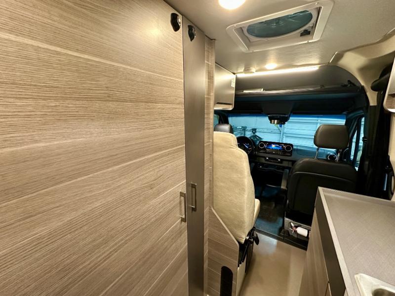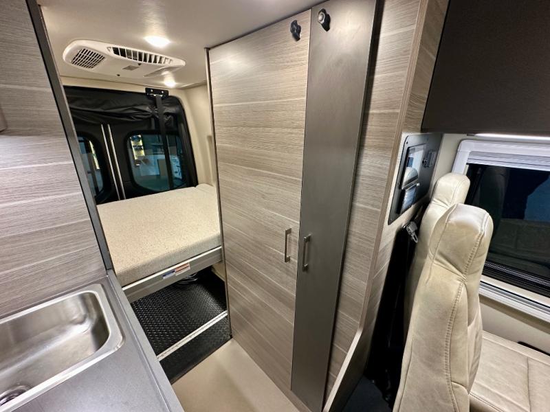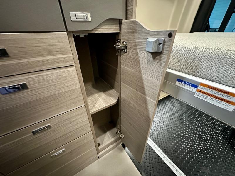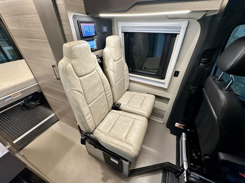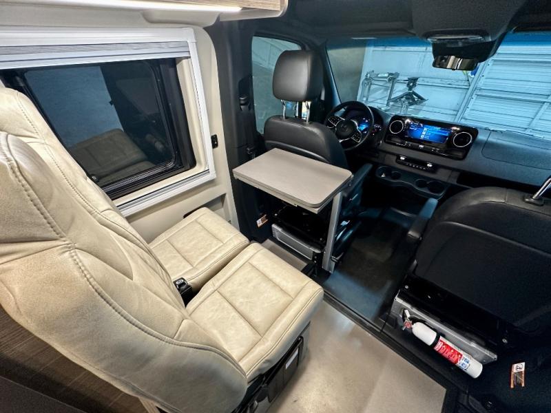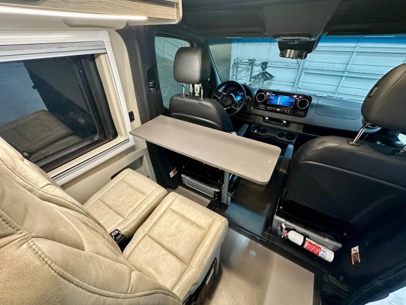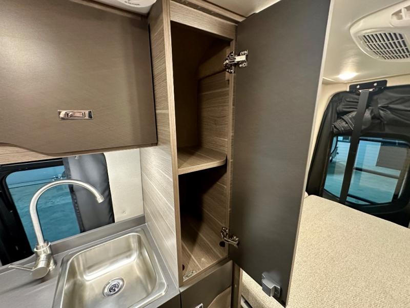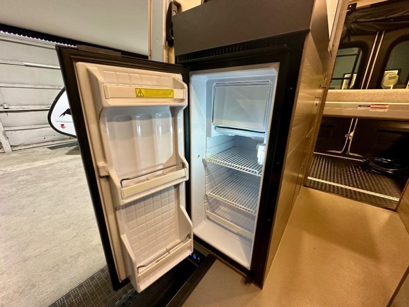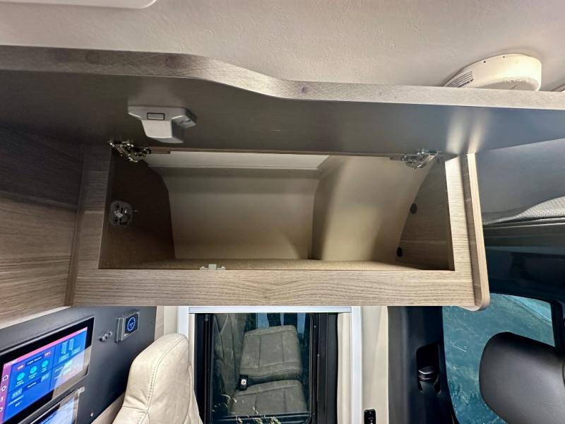 Take some time to get away with your favorite person in this Terrain Class B diesel motorhome! Not only is there room to sleep two with the power lift bed that has a 750-LB capacity, but there is also room to seat a total of four people on the two heated power swivel cab seats and the two additional bucket seats with slide and recline features in front of the removable/adjustable table. You'll love cooking in the kitchen with a portable induction cooktop, stainless steel sink, plus a pantry and 3 cu. ft. DC refrigerator for food storage. The wet bath is very functional with its removable bamboo shelf, powered roof vent, and retractable clothes line.
