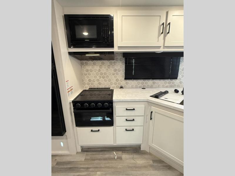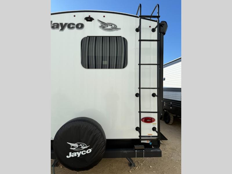 The lightweight White Hawk travel trailers by Jayco will blow you away with their roomy interiors, luxurious amenities, and durable construction. The Magnum Truss Roof System can withstand 50% more weight than the competition, and the Stronghold VBL lamination is the lightest, yet strongest in the industry. Each model includes American-made Goodyear tires with self-adjusting brakes, dark tinted, frameless safety glass windows, and modern graphics package with dual-colored sidewalls for a sleek look. The White Hawk travel trailers also include a barreled interior ceiling with up to 81" of interior height, an electric fireplace, decorative kitchen backsplash, plus many more interior comforts!