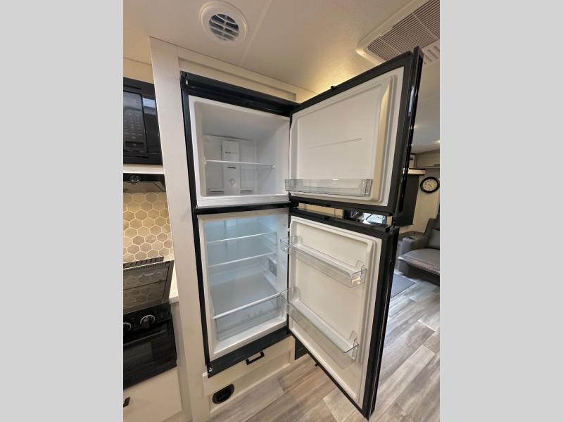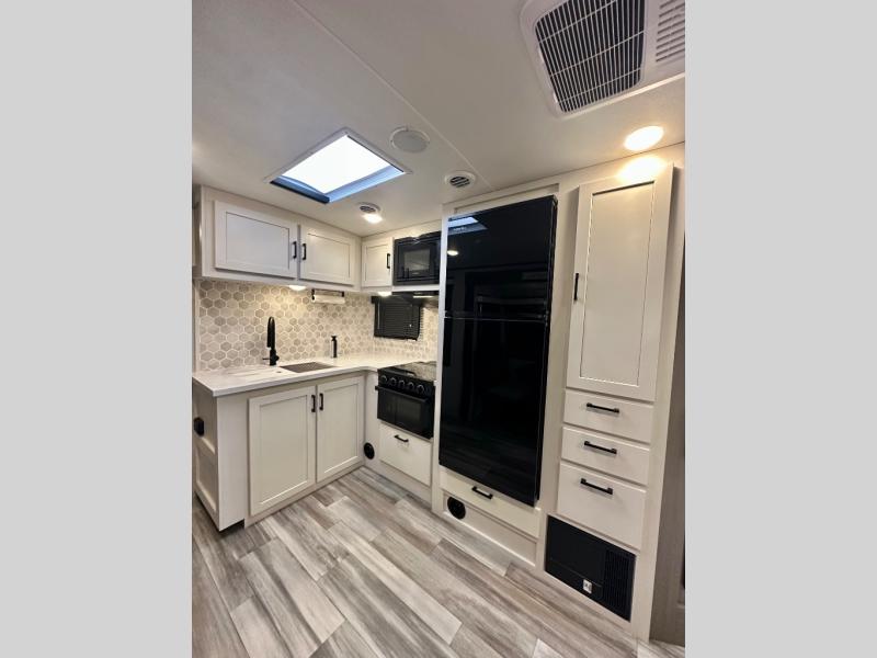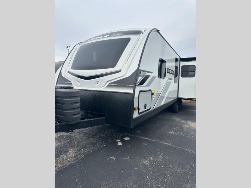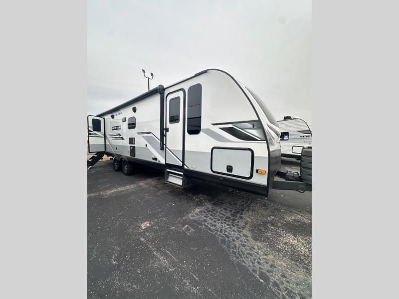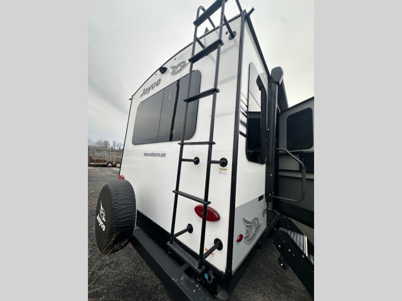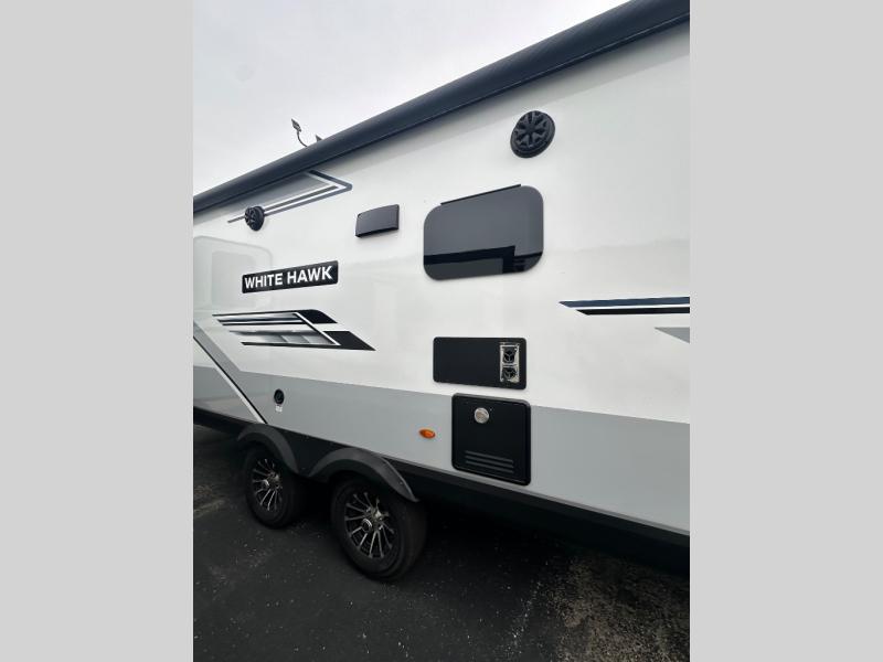 The lightweight White Hawk travel trailers by Jayco will blow you away with their roomy interiors, luxurious amenities, and durable construction. The Magnum Truss Roof System can withstand 50% more weight than the competition, and the Stronghold VBL lamination is the lightest, yet strongest in the industry. Each model includes American-made Goodyear tires with self-adjusting brakes, dark tinted, frameless safety glass windows, and modern graphics package with dual-colored sidewalls for a sleek look. The White Hawk travel trailers also include a barreled interior ceiling with up to 81" of interior height, an electric fireplace, decorative kitchen backsplash, plus many more interior comforts!