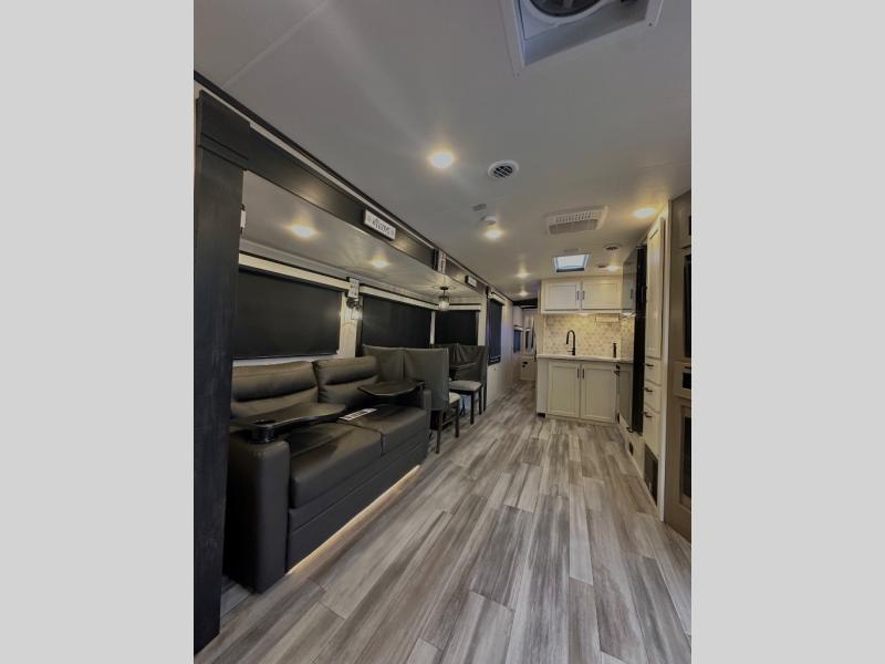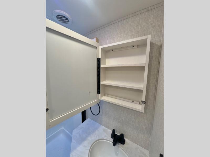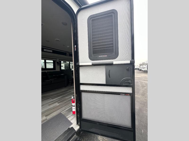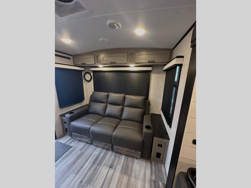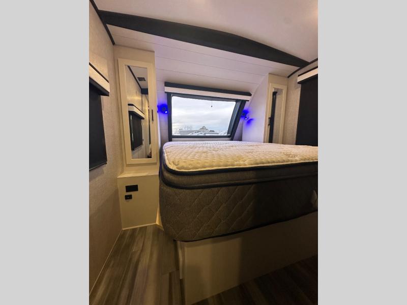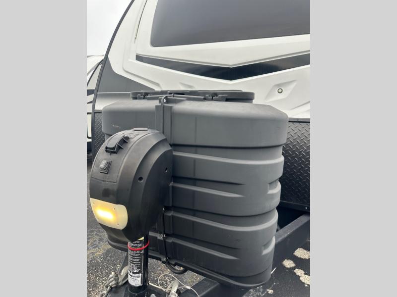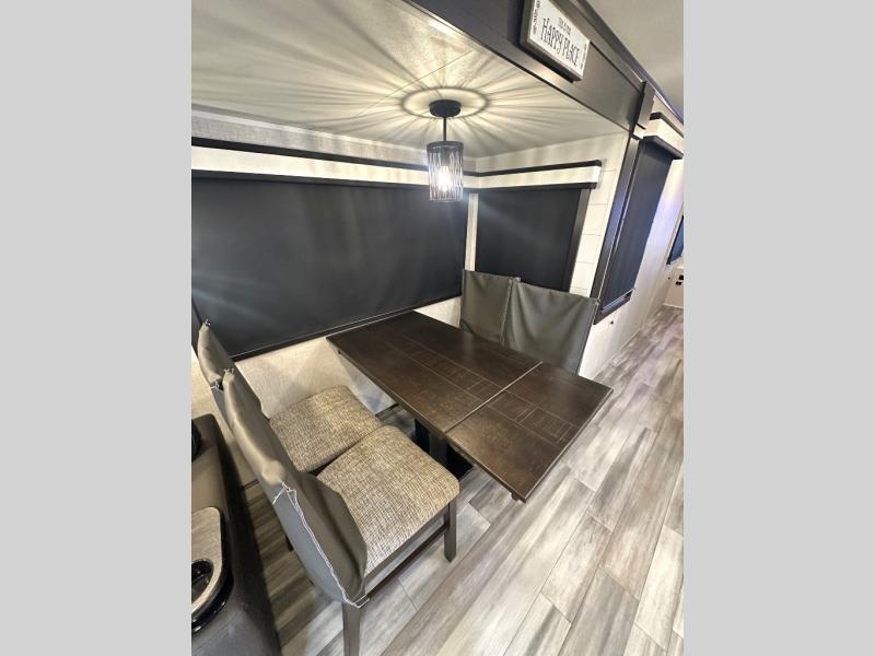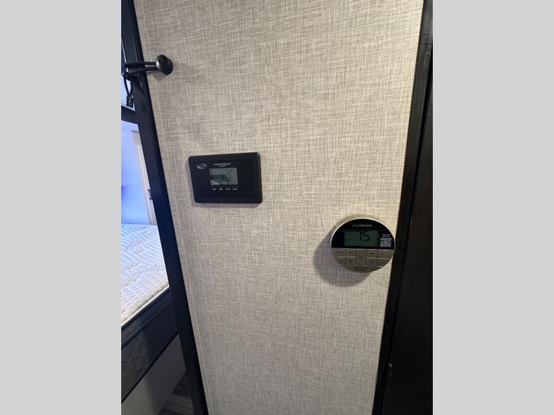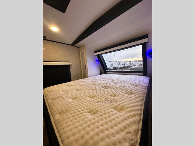 How does a dual entry travel trailer sound with sleeping space for five? Pack up and head to the lake because this model is the one! Once you arrive at your destination, set up the 20' power awning and a enjoy a cold drink in your camp chair. There is a convenient Jayport with an LP quick connect if you want to hook up your gas grill you brought along, and plenty of outside storage to bring along the fishing poles. Inside, your crew can relax on the tri-fold sofa, the booth dinette, or the rear theater seat, which is in great view of the LED TV and fireplace. Preparing meals will be easy in this White Hawk kitchen with plenty of counter space, a three burner cooktop, plus a microwave oven. The full bath includes a linen closet to store clean towels and a medicine cabinet to bring along your necessities. And don't overlook the front private bedroom with a queen bed, dual wardrobes, and its own exterior entry door for convenience!