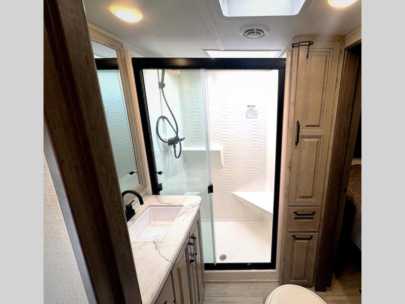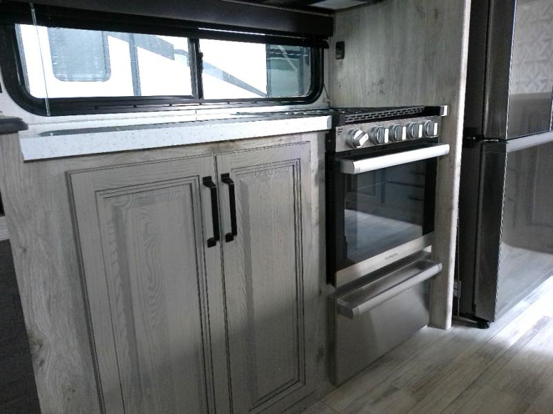 With any Keystone luxury full-profile Alpine Avalanche Edition fifth wheel, you will experience wide-body construction that allows you to stretch out and stay awhile during any season thanks to the Polar Pack All Season Protection that includes a heated and enclosed underbelly, an Astro foil reflective layer on the roof, front and rear walls, and two static attic vents, plus more! The interior offers hardwood slide out fascia with wood accents, crown molding, plus your choice of modern interior design. There are many more Keystone exclusives, like the Tru-Fit slide construction, the in-floor heating ducts, KeyTV™, and much more to bring you a full-packed, luxury fifth wheel!