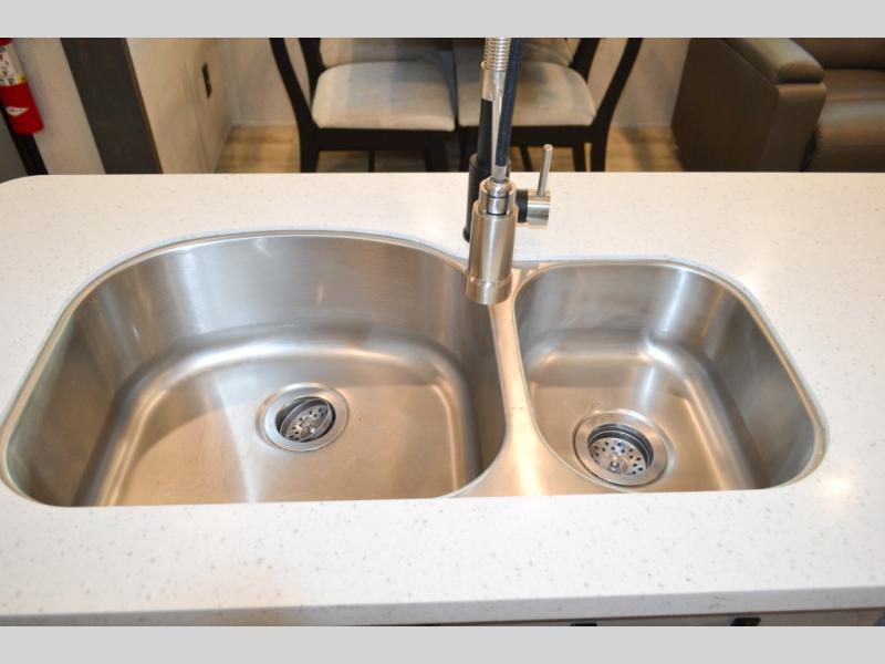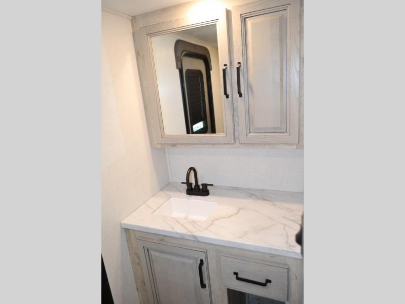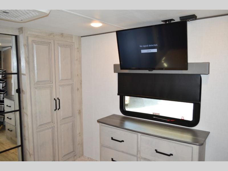 With any Keystone luxury full-profile Alpine Avalanche Edition fifth wheel, you will experience wide-body construction that allows you to stretch out and stay awhile during any season thanks to the Polar Pack All Season Protection that includes a heated and enclosed underbelly, an Astro foil reflective layer on the roof, front and rear walls, and two static attic vents, plus more! The interior offers hardwood slide out fascia with wood accents, crown molding, plus your choice of modern interior design. There are many more Keystone exclusives, like the Tru-Fit slide construction, the in-floor heating ducts, KeyTV™, and much more to bring you a full-packed, luxury fifth wheel!