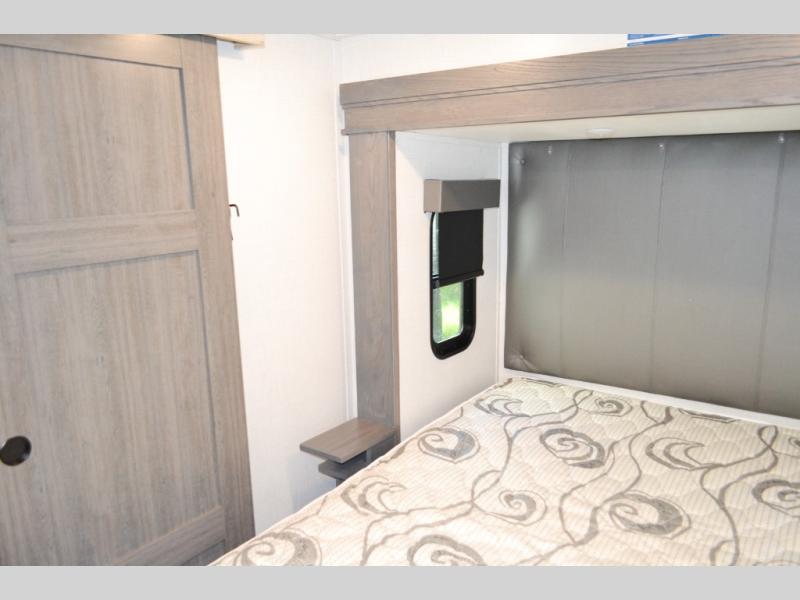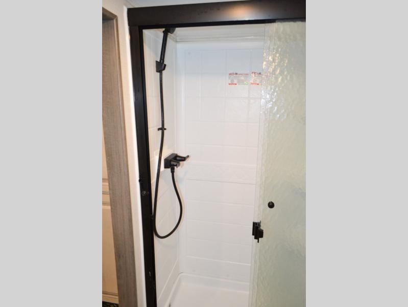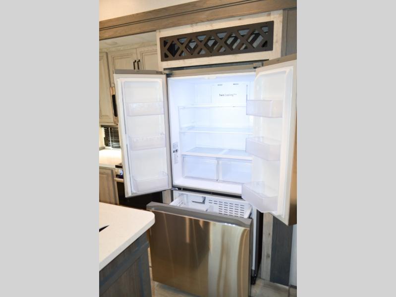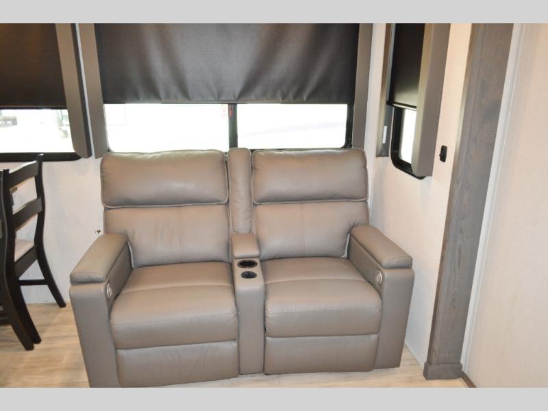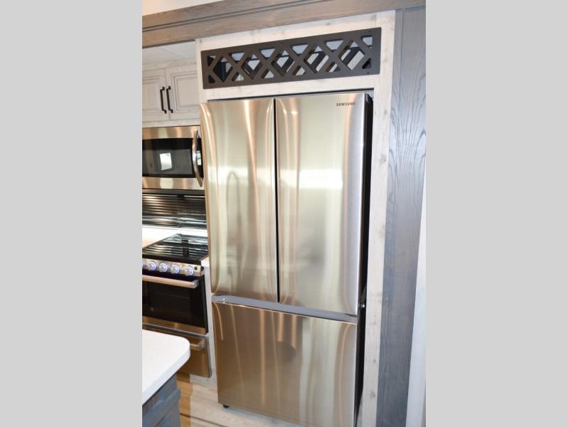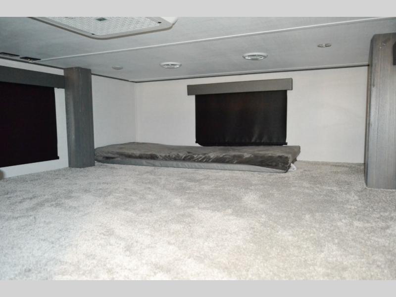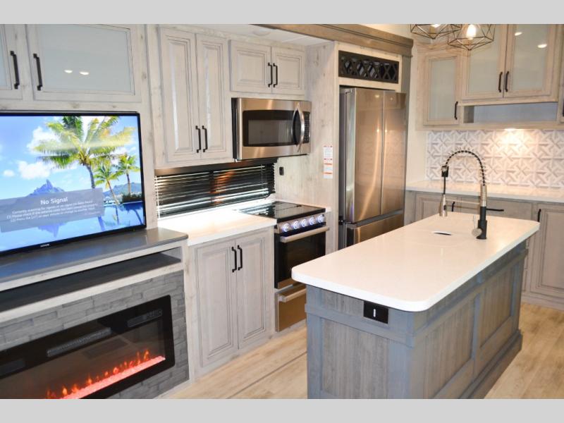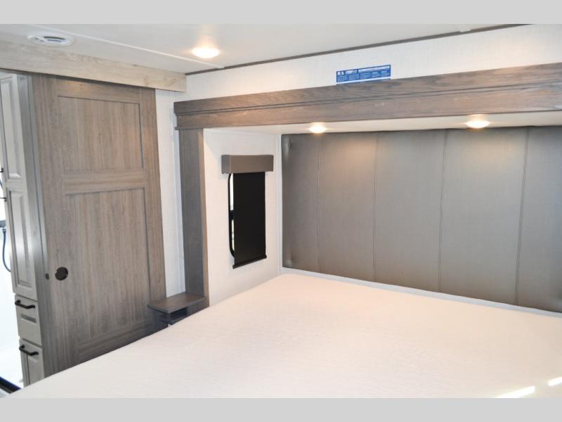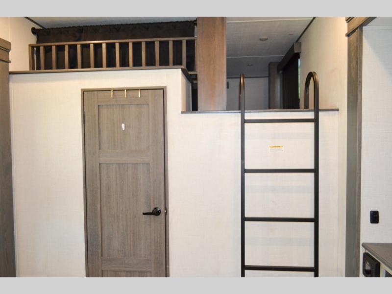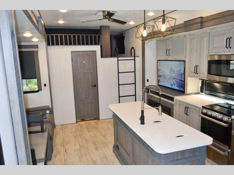 Get ready for family fun in this fifth wheel offering a front master bedroom with a king-size bed slide, plus a second master bedroom for your guests! The second bedroom includes a queen-size bed slide, a loft above the bedroom that sleeps three more, plus a rear full bathroom including a unique rear entry/exit door. And both entrances include the LCl SolidStep. The main living and kitchen area offers dual opposing slides and include theater seating, a free standing dinette, a fireplace, a center island and full kitchen amenities to feed your entire crew.