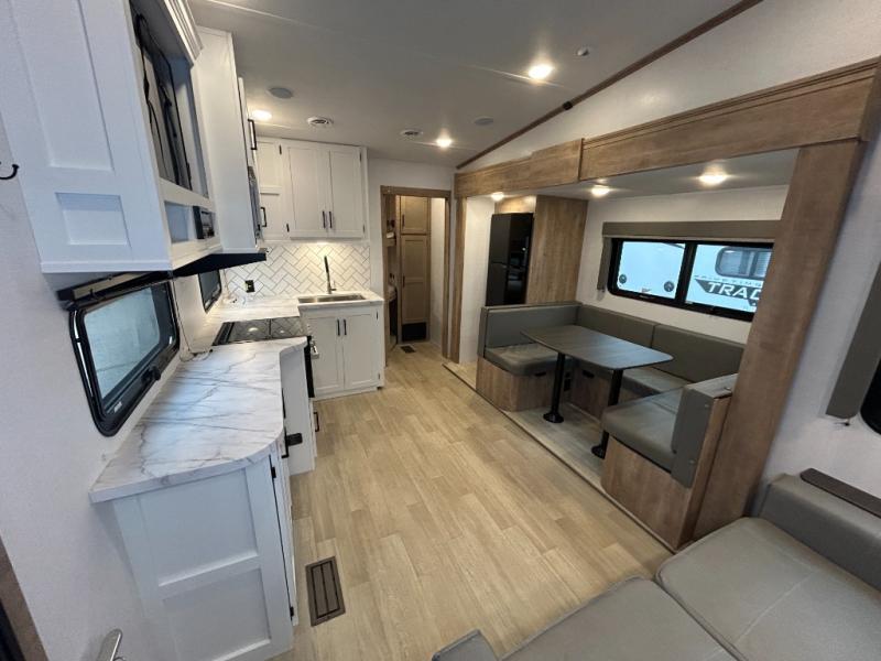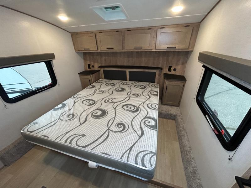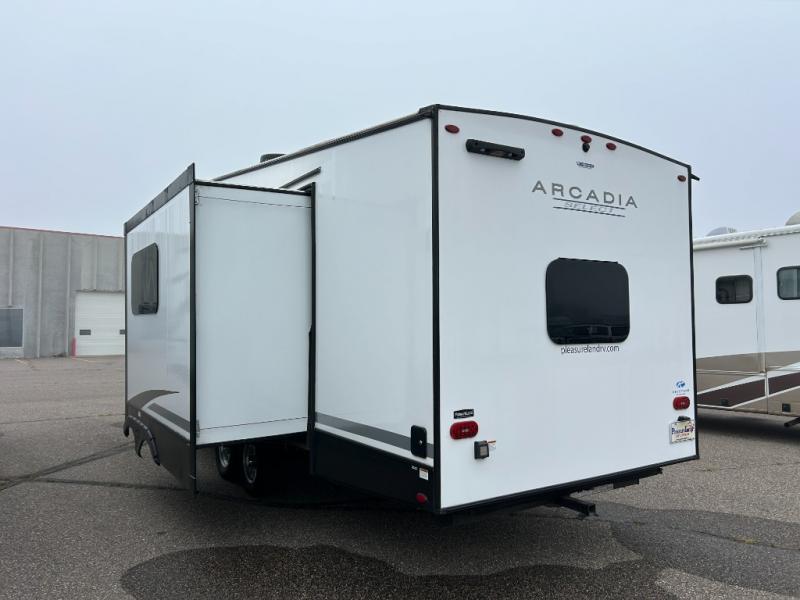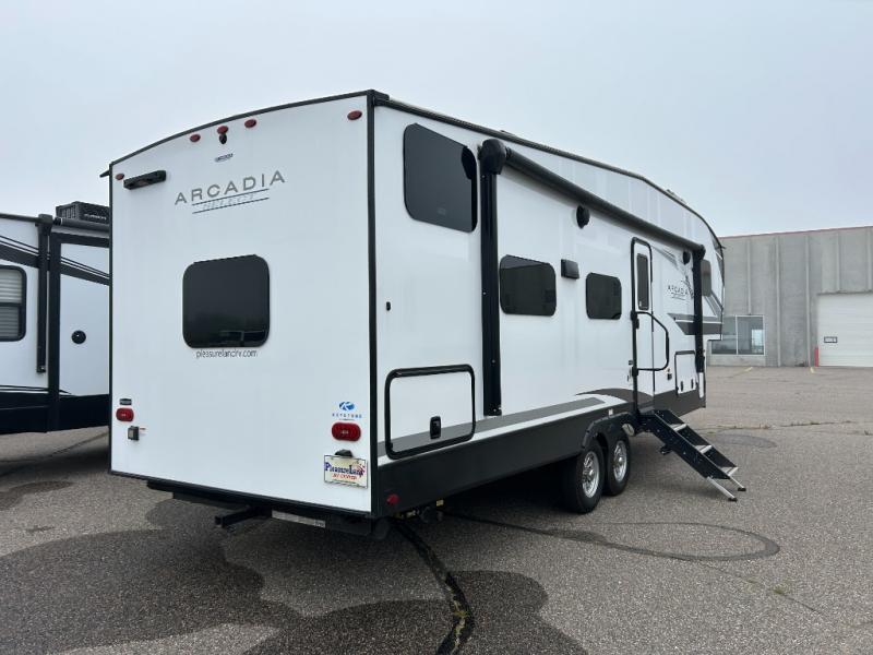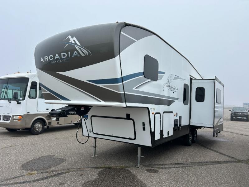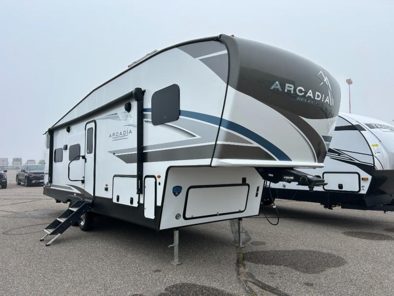 With any Arcadia Select fifth wheel by Keystone you will enjoy easy towability and at-home comforts at an affordable price! The laminated sidewalls with five sided aluminum superstructure will provide a strong foundation so you can enjoy your RV for years to come, plus a one-piece, heated and enclosed polypropylene underbelly means you can camp year around! And an upgraded Roto-Flex hitch pin with MaxTurn technology, Road Armor rubberized equalization suspension system and Dexter Nev-R-Adjust electric brakes will make it easy to tow. Head inside to find tall slides for added space, seamless, pressed countertops, convenient underbed storage, and a large shower with a retractable door and skylight. These fifth wheels also include a Blade Pure A/C system, Girard on-demand tankless water heater, two 30 lb. LP tanks, and more utilities to make your camping experience run smoothly.