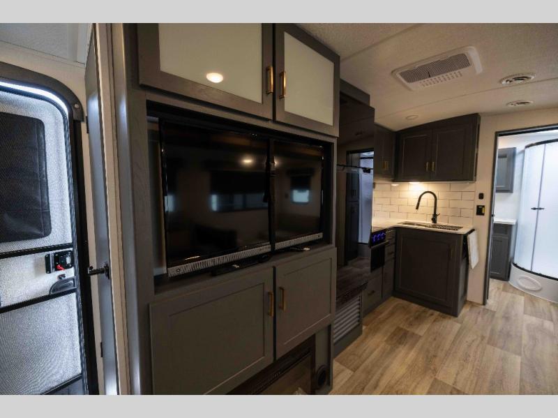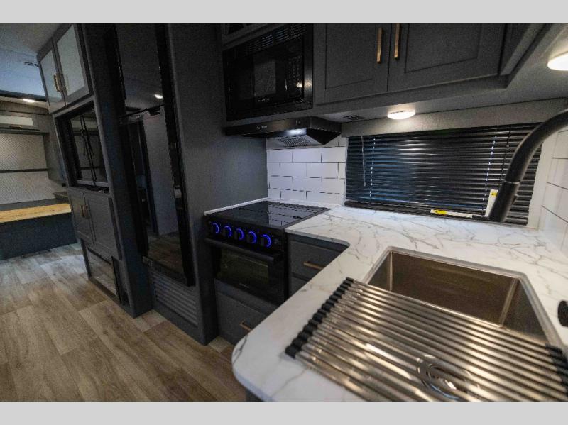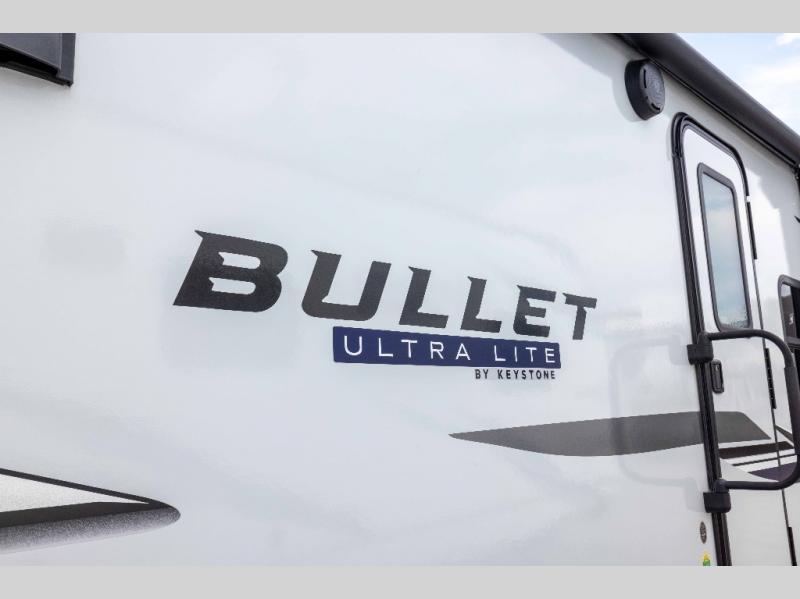 With any Keystone Bullet travel trailer you can experience ultra-lightweight camping with style! The interior design and functionality will impress you, and the stunning cabinetry, the vaulted ceilings, and the built-in laundry chute are just a few of the highlights. Each is built with Hyper Deck RV flooring that is stronger, lighter and more resilient than traditional wood laminated flooring, a pass-through storage compartment with a peg board and baggage doors with magnetic catches, and a docking station, an easily accessible convenience center with water connections, water heater bypass, KeyTV hookups, stabilizer jack switches and winterization access. You will also find a Giggy box, a weather protected, labeled, and fused electric box, plus more Keystone Exclusives. Start your glamorous and carefree trip today in a Bullet!