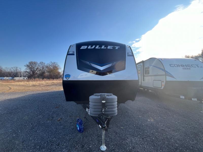 With any Keystone Bullet travel trailer you can experience ultra-lightweight camping with style! The interior design and functionality will impress you, and the stunning cabinetry, the vaulted ceilings, and the built-in laundry chute are just a few of the highlights. Each is built with Hyper Deck RV flooring that is stronger, lighter and more resilient than traditional wood laminated flooring, a pass-through storage compartment with a peg board and baggage doors with magnetic catches, and a docking station, an easily accessible convenience center with water connections, water heater bypass, KeyTV hookups, stabilizer jack switches and winterization access. You will also find a Giggy box, a weather protected, labeled, and fused electric box, plus more Keystone Exclusives. Start your glamorous and carefree trip today in a Bullet!
