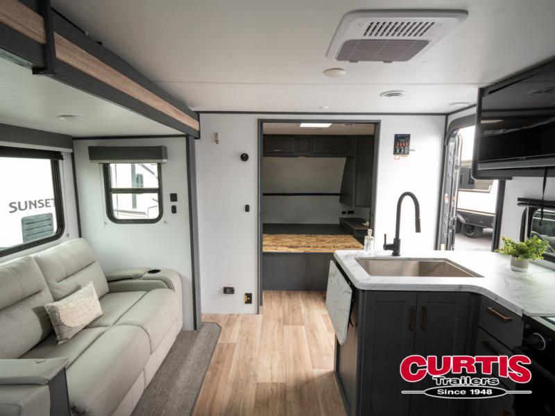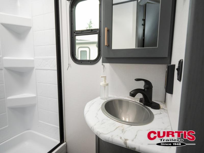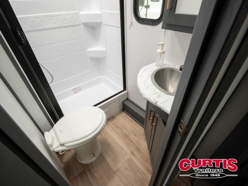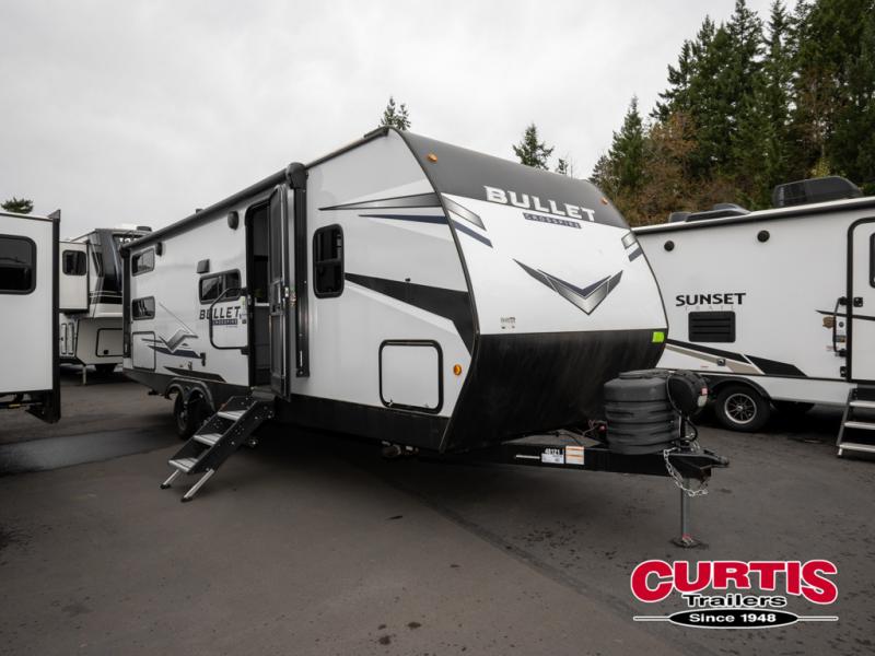 Each Bullet Crossfire Double Axle travel trailer by Keystone is constructed with a NORCO HSLA steel/automotive deposition coated frame assembled with huck bolts for durability. The TORFLEX rubber torsion suspension will provide smooth towing, and the one-piece ABS enclosed underbelly will help extend your camping season. Setting up your trailer will be a breeze with the electric tongue jack and four electric stabilizer jacks, and there is an electric awning with adjustable arms and LED lighting for an inviting outdoor living space. The affordable, high-quality RV solar energy system, SolarFlex Protect 220 comes standard with each model and will allow you to go off-grid when you want, or you can choose the optional SolarFlex Discover 440i for even more off-grid capabilities. Inside, you'll find fabric night shades, Beauflor woven flooring in the slides, full depth cabinets with full extension drawer guides, and many more comforts.