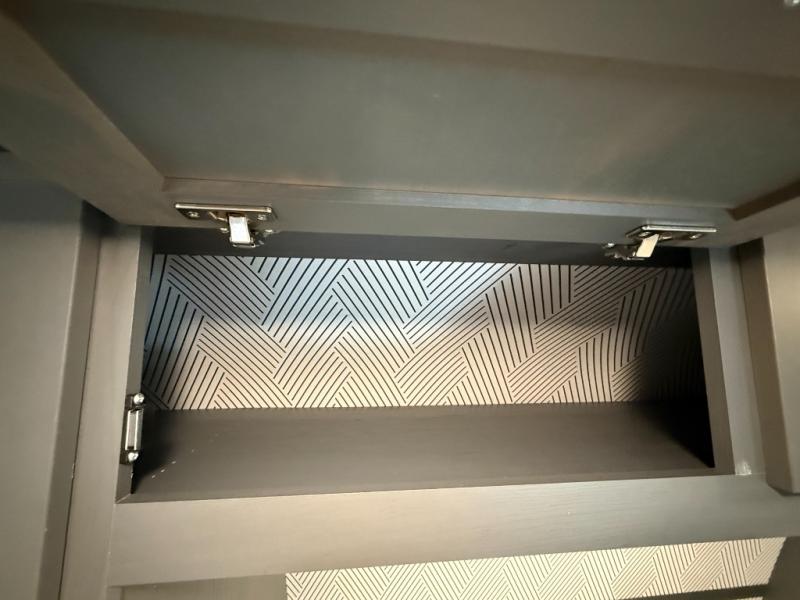 Full-depth cabinets with full-extension drawer guides for organized storage.