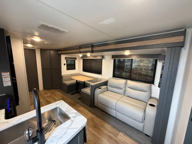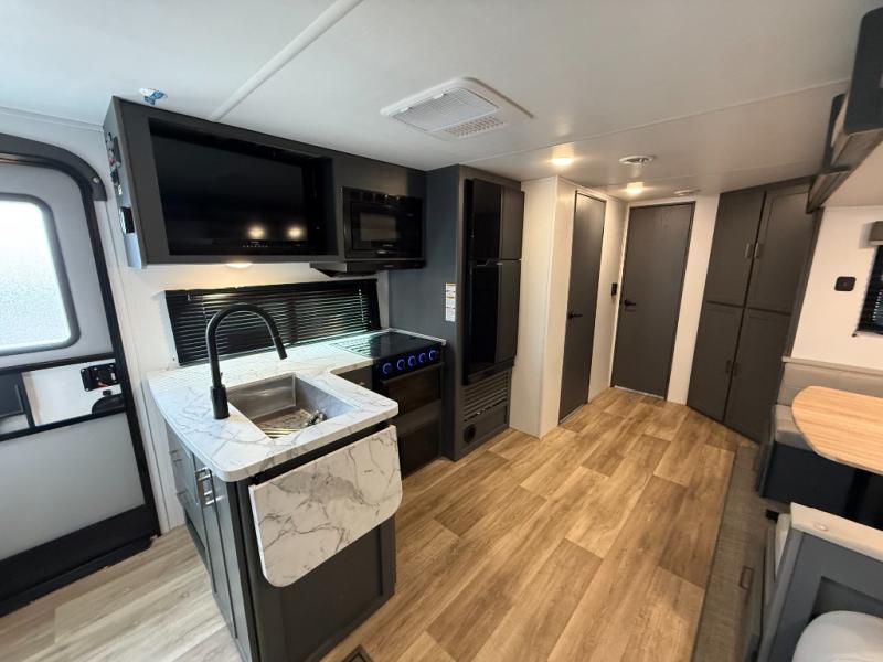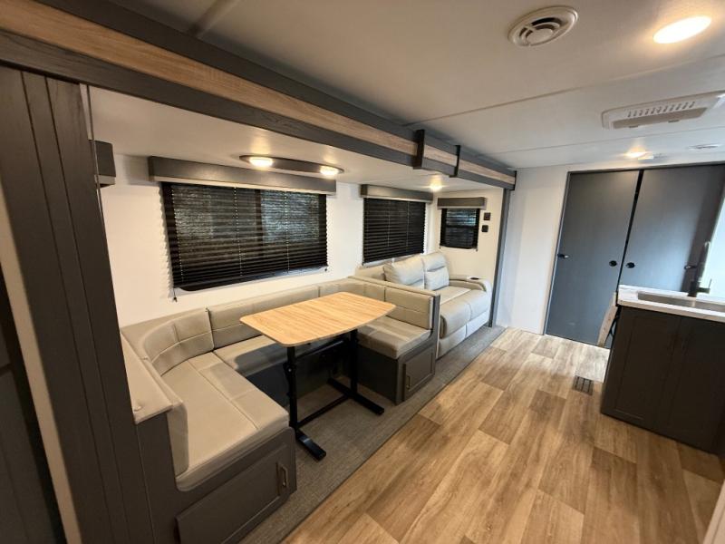 The 2024 Keystone Bullet Crossfire Double Axle 2870QB is a family-friendly travel trailer built for comfort, practicality, and versatile camping. It’s designed to sleep up to 10 people, thanks to a rear private bunkhouse with four bunks, a front bedroom with a queen bed, and convertible living area seating.