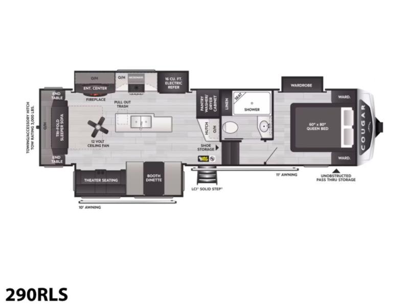 Keystone Cougar fifth wheel 290RLS highlights: