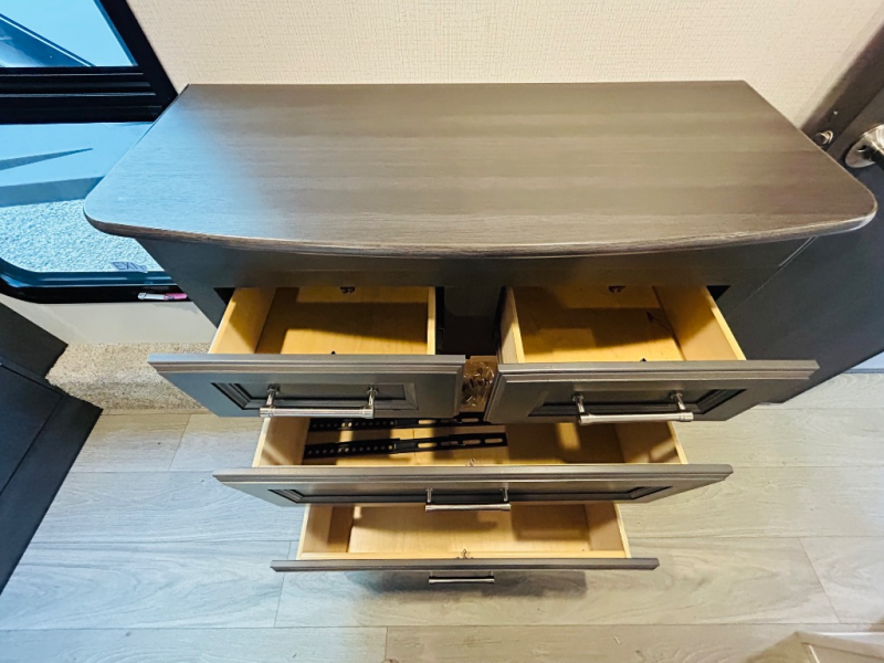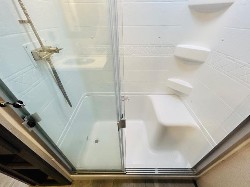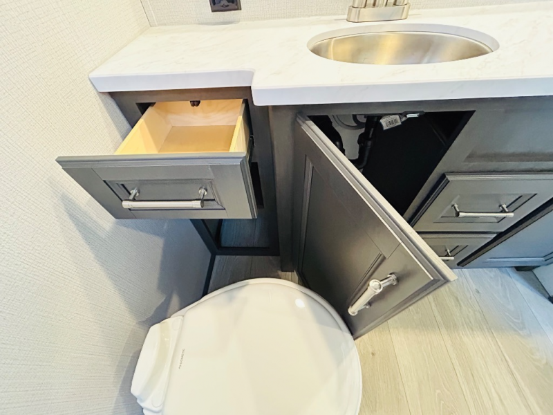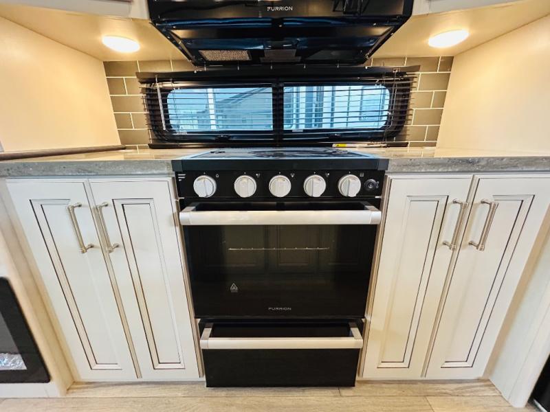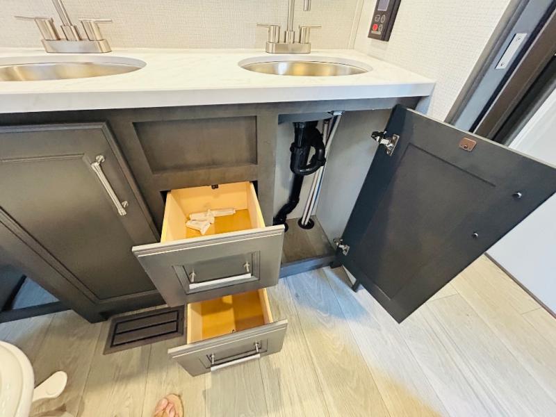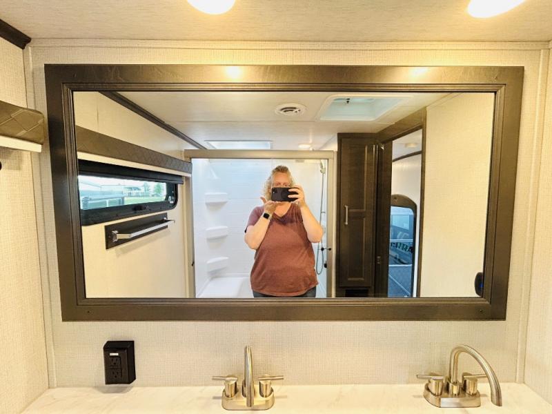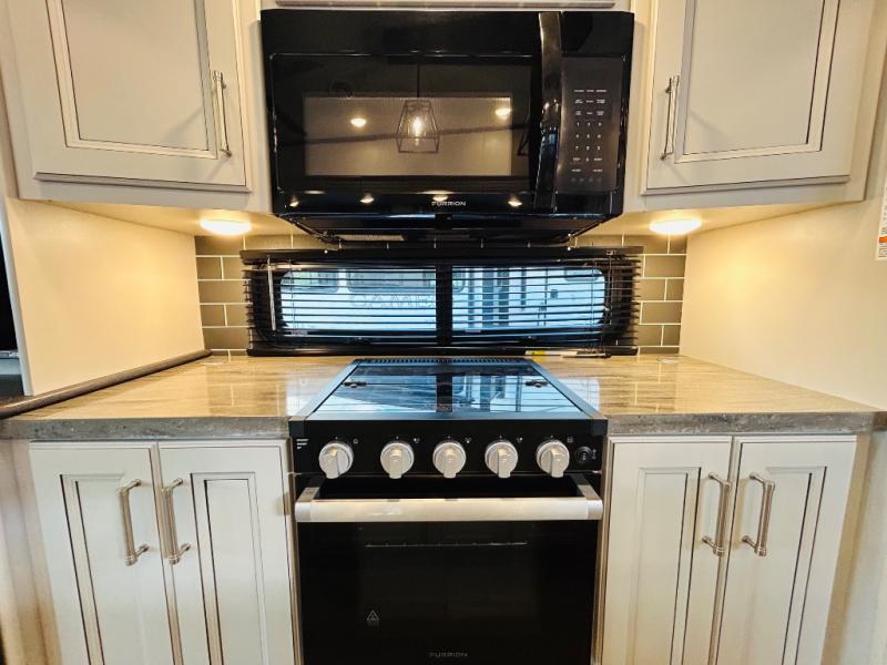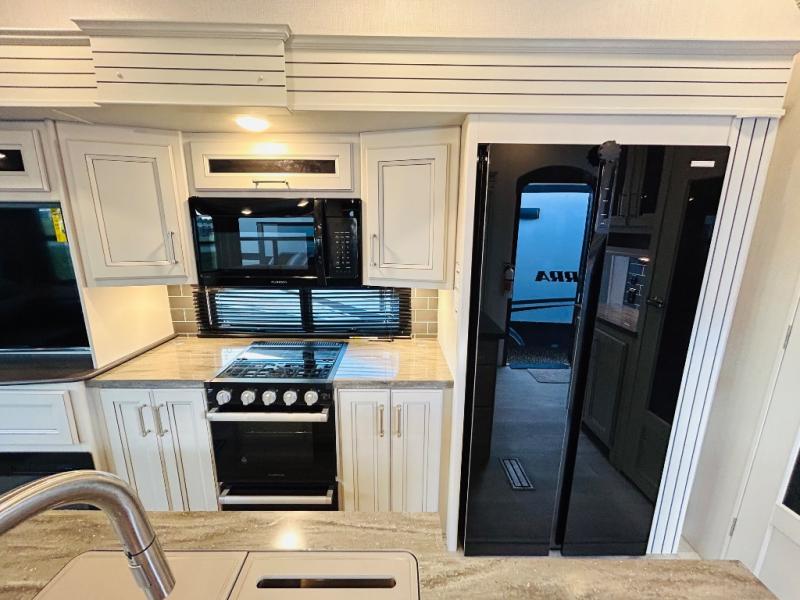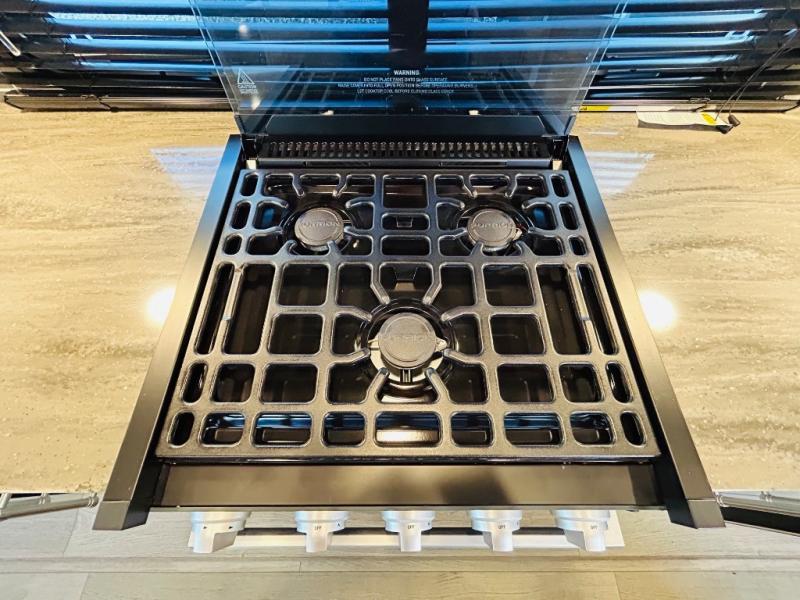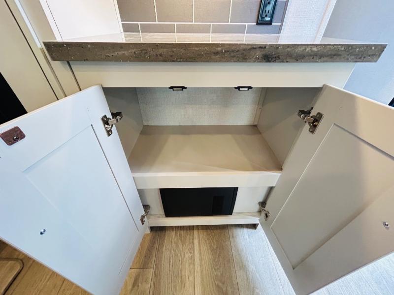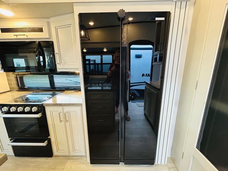 The dual-sink vanity in the full bathroom on this Cougar fifth wheel is what will make your morning routine feel just the same on the road as it does at home! You'll also sleep just as well on the queen-size bed in the front private bedroom, and there is under-bed storage, a full-height wardrobe, and a dresser for all of your personal belongings. As you spend time in the main living area, you'll appreciate having extra space thanks to the set of opposing slides, and the kitchen island will be easy to work around. You'll be able to relax on the tri-fold sleeper sofa and theater seating while you watch the LED HDTV, and the booth dinette is another seating location that can be used for meal time or game nights.