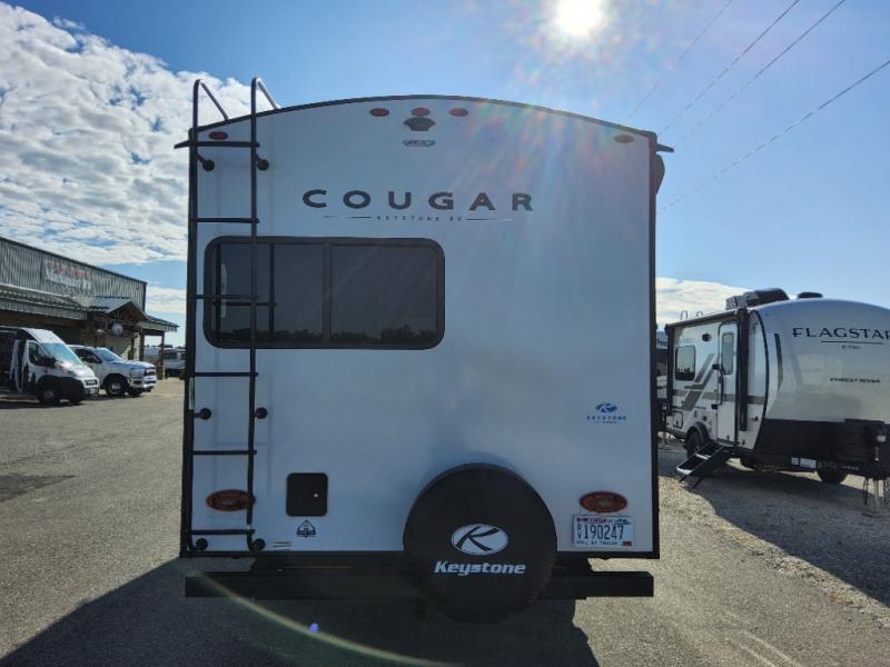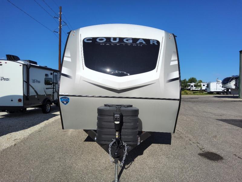 The Keystone Cougar Half-Ton fifth wheel and travel trailers are known as one of America's favorites for a reason! Some of those reasons are the exclusive features that come from Keystone, like the Winegard Air 360+ omni-directional rooftop antenna, the in-floor heating ducts, and the Hyper Deck flooring. The Cougar Half-Ton has a Climate Guard protection package to keep you safe during inclement weather, along with two roof attic vents, PEX plumbing and more. Use the 21" Furrion range with Piezo ignition to create all of those familiar meals from home, and enjoy endless hot showers with the Girard tankless on-demand water heater!
