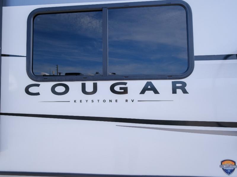 The Keystone Cougar Half-Ton fifth wheel and travel trailers are known as one of America's favorites for a reason! Some of those reasons are the exclusive features that come from Keystone, like the Winegard Air 360+ omni-directional rooftop antenna, the in-floor heating ducts, and the Hyper Deck flooring. The Cougar Half-Ton has a Climate Guard protection package to keep you safe during inclement weather, along with two roof attic vents, PEX plumbing and more. Use the 21" Furrion range with Piezo ignition to create all of those familiar meals from home, and enjoy endless hot showers with the Girard tankless on-demand water heater!