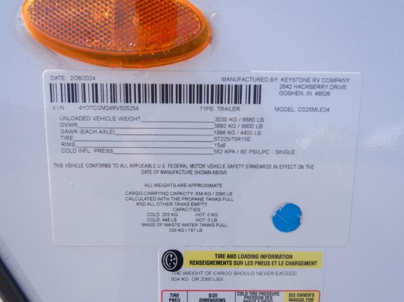 Used 2024 Keystone RV Cougar Half-Ton 25MLE Travel Trailer