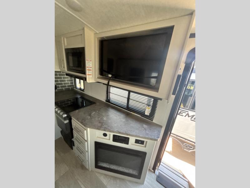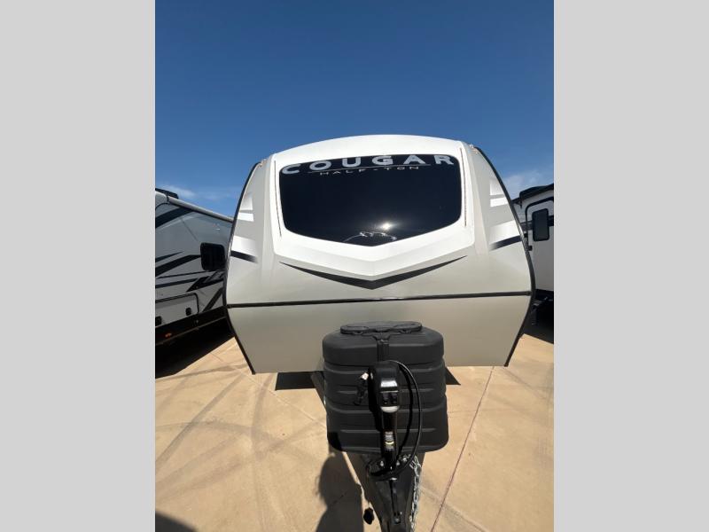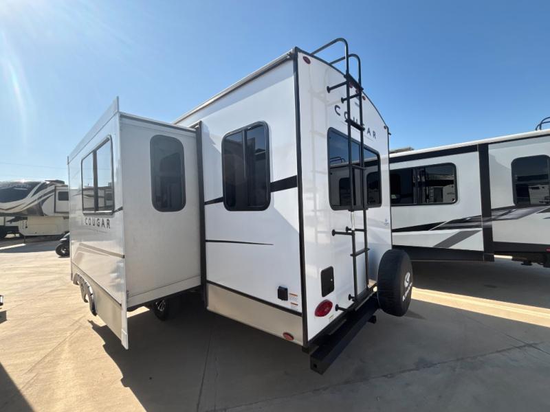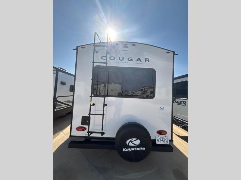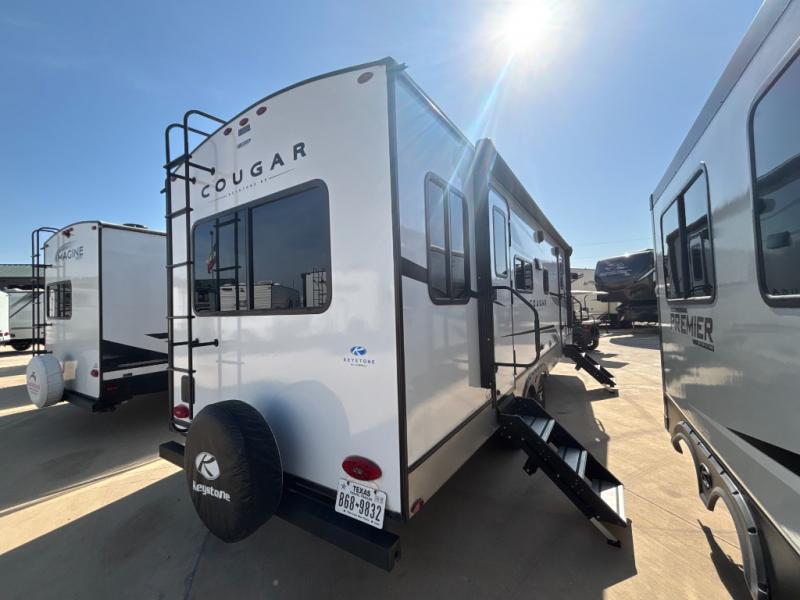 The Keystone Cougar Half-Ton fifth wheel and travel trailers are known as one of America's favorites for a reason! Some of those reasons are the exclusive features that come from Keystone, like the Winegard Air 360+ omni-directional rooftop antenna, the in-floor heating ducts, and the Hyper Deck flooring. The Cougar Half-Ton has a Climate Guard protection package to keep you safe during inclement weather, along with two roof attic vents, PEX plumbing and more. Use the 21" Furrion range with Piezo ignition to create all of those familiar meals from home, and enjoy endless hot showers with the Girard tankless on-demand water heater!