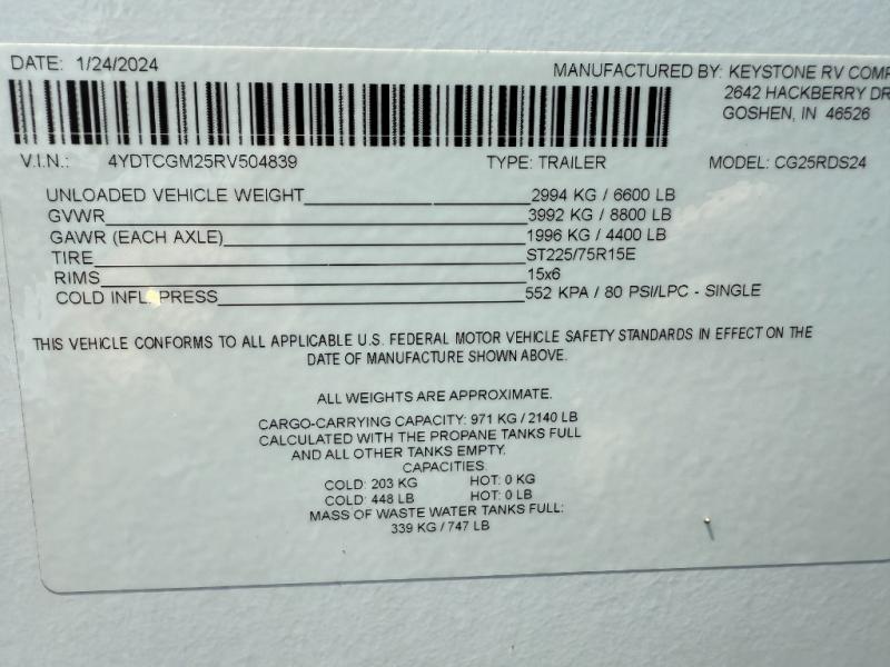 Used 2024 Keystone RV Cougar Half-Ton 25RDS Travel Trailer