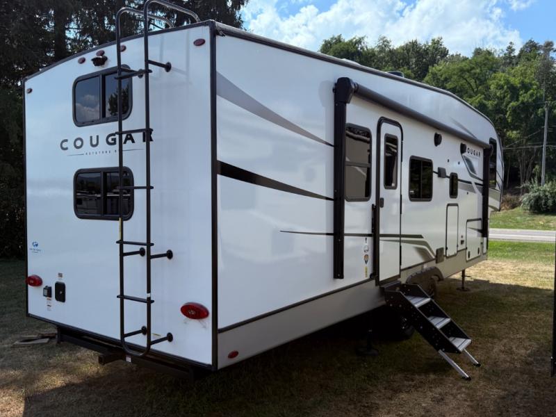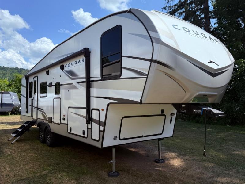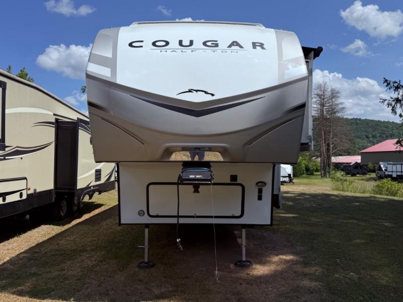 The Keystone Cougar Half-Ton fifth wheel and travel trailers are known as one of America's favorites for a reason! Some of those reasons are the exclusive features that come from Keystone, like the Winegard Air 360+ omni-directional rooftop antenna, the in-floor heating ducts, and the Hyper Deck flooring. The Cougar Half-Ton has a Climate Guard protection package to keep you safe during inclement weather, along with two roof attic vents, PEX plumbing and more. Use the 21" Furrion range with Piezo ignition to create all of those familiar meals from home, and enjoy endless hot showers with the Girard tankless on-demand water heater!