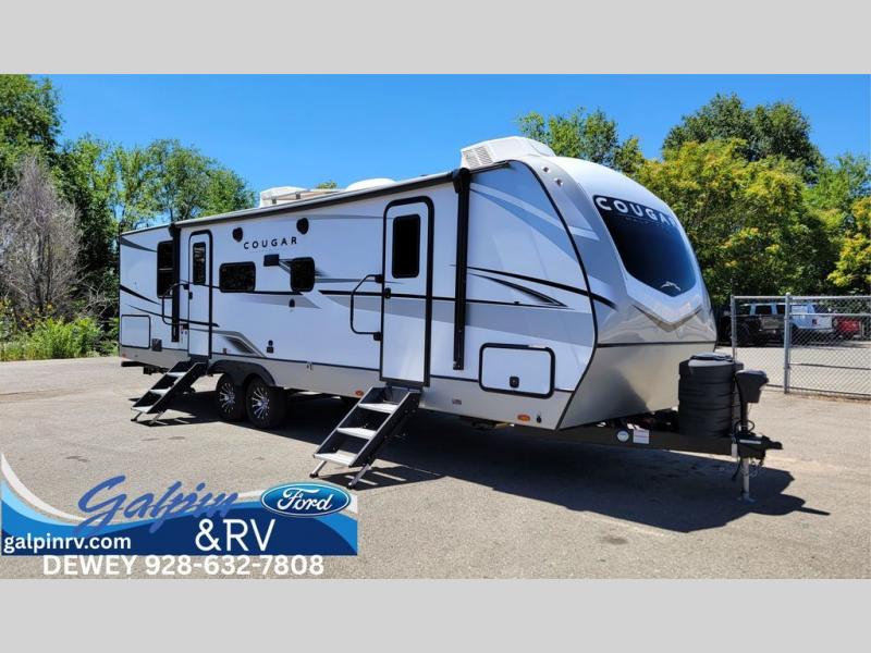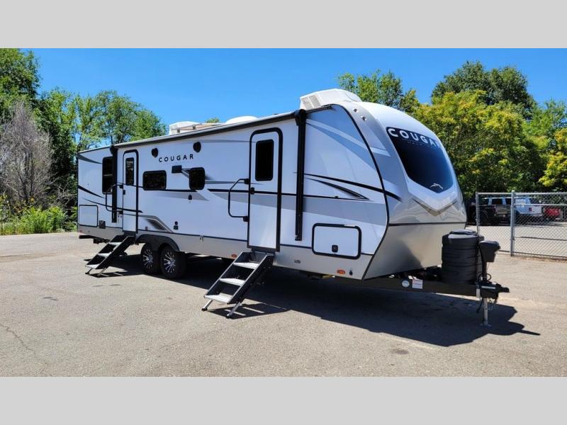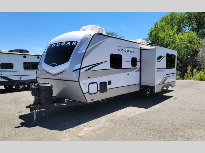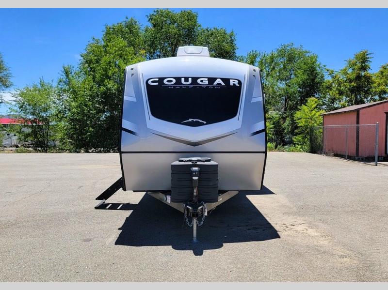 The Keystone Cougar Half-Ton fifth wheel and travel trailers are known as one of America's favorites for a reason! Some of those reasons are the exclusive features that come from Keystone, like the Winegard Air 360+ omni-directional rooftop antenna, the in-floor heating ducts, and the Hyper Deck flooring. The Cougar Half-Ton has a Climate Guard protection package to keep you safe during inclement weather, along with two roof attic vents, PEX plumbing and more. Use the 21" Furrion range with Piezo ignition to create all of those familiar meals from home, and enjoy endless hot showers with the Girard tankless on-demand water heater!