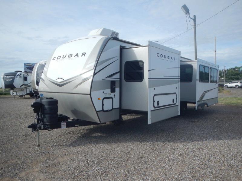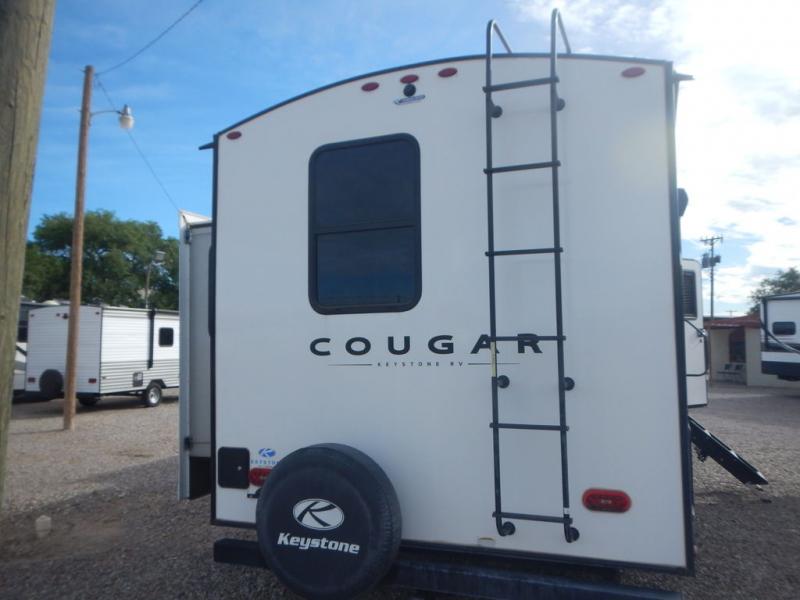 The Keystone Cougar Half-Ton fifth wheel and travel trailers are known as one of America's favorites for a reason! Some of those reasons are the exclusive features that come from Keystone, like the Winegard Air 360+ omni-directional rooftop antenna, the in-floor heating ducts, and the Hyper Deck flooring. The Cougar Half-Ton has a Climate Guard protection package to keep you safe during inclement weather, along with two roof attic vents, PEX plumbing and more. Use the 21" Furrion range with Piezo ignition to create all of those familiar meals from home, and enjoy endless hot showers with the Girard tankless on-demand water heater!