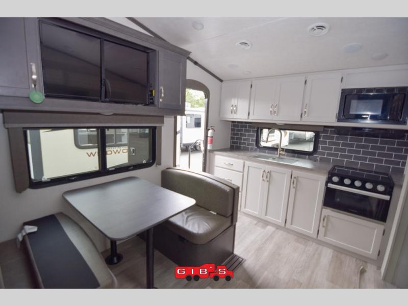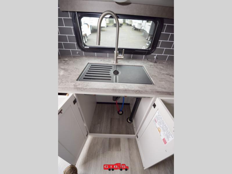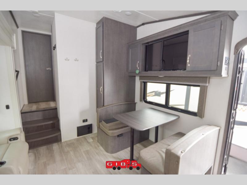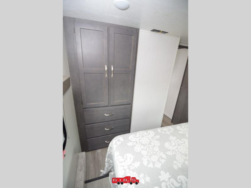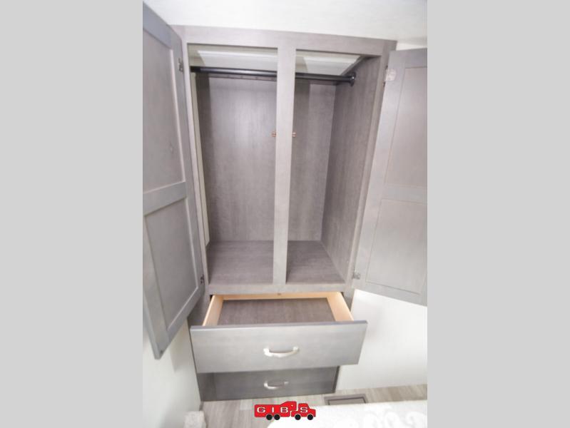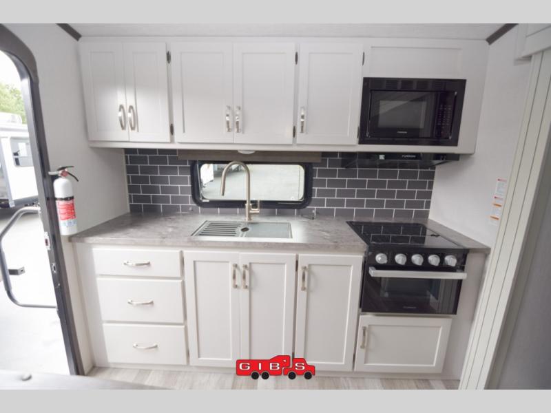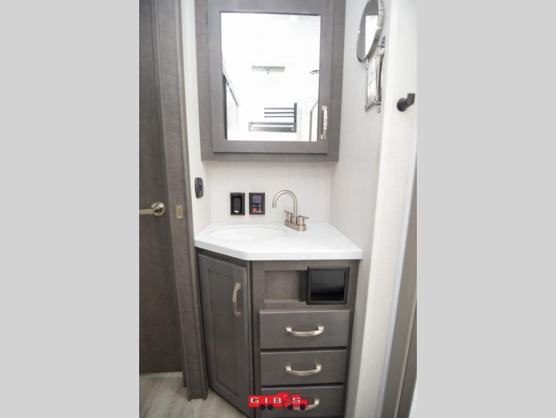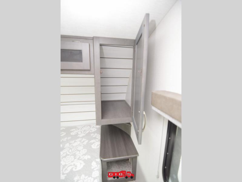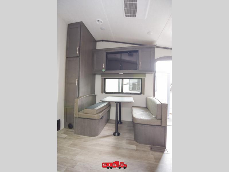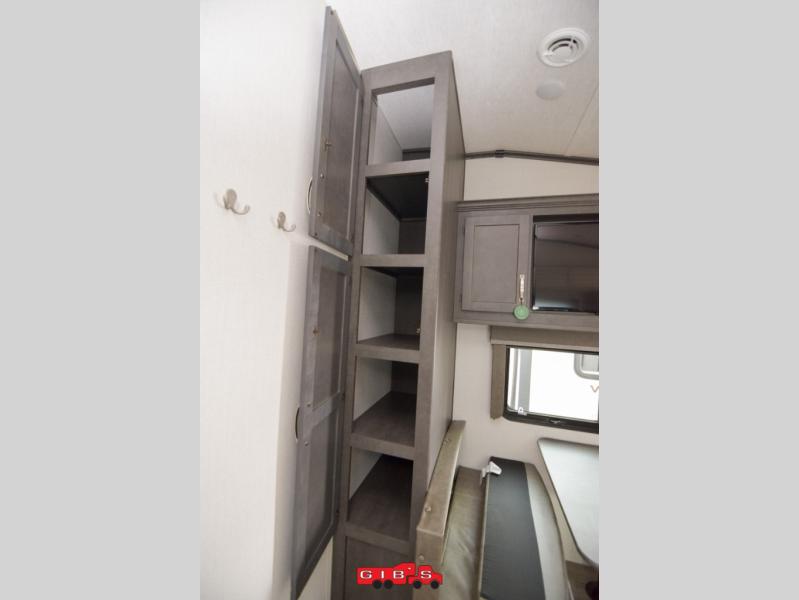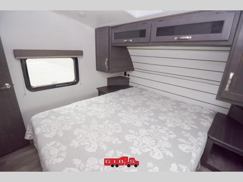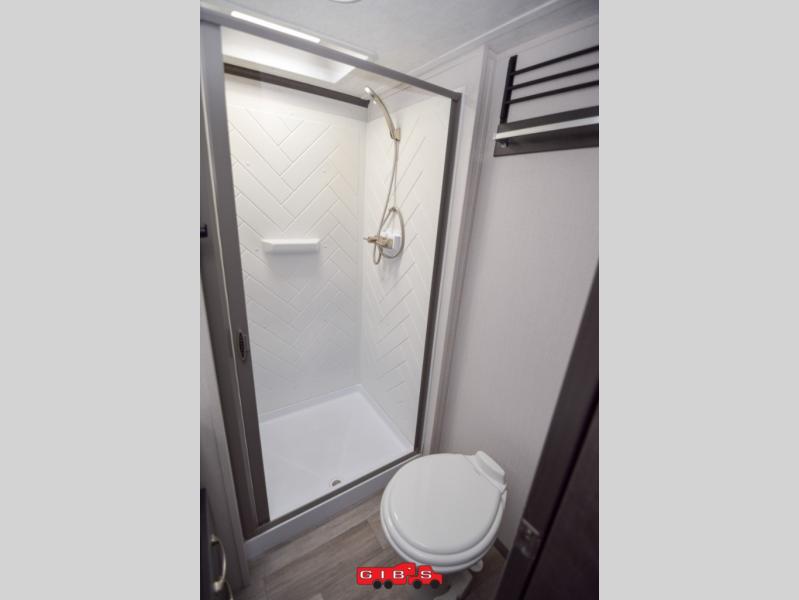 The Cougar Sport structural I-beam frame with stamped steel cross-members and outriggers, plus its laminated sidewalls with five-sided aluminum superstructure and Alpha Super Flex roof membrane are what active RVers love about the construction of the Cougar line. The Cougar Sport models are no exception when it comes to a great package, as well as being smaller and lighter weight than their big brother Cougar models. A one-piece, heated and enclosed polypropylene underbelly means a longer camping season. On the inside, residential shaker style hardwood cabinet doors and decorative crown molding, plus seamless pressed countertops and an on-demand water heater will make your unit feel even more like home. You are also sure to appreciate the shiplap style decorative accent wall behind the bed, a porcelain foot flush toilet in the bathroom, plus residential kitchen hardware, and so much more.