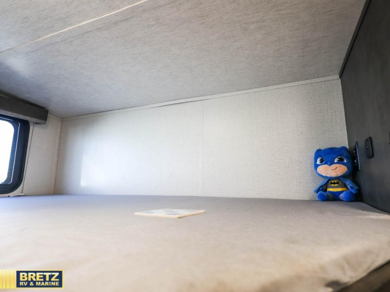 This lightweight Cougar Sport bunk model features sleeping for ten or more with triple stacked double bed bunks in the rear bunk room, a large U-shaped dinette that can be transformed into sleep space, as well as a tri-fold sofa sleeper and a queen bed in the private bedroom up front. The U-shaped dinette will seat quite a few of you for meals and even game time, plus the sofa is nearby for even more to kick back on. A fully equipped kitchen with overhead microwave, a three burner range, and large sink plus storage will make it easy to keep everyone fed and happy. A 10.4 Cu. Ft. 12 volt refrigerator will keep all of your perishable items fresh, and there are plenty of cabinets for storing snacks and dry goods as well. Head up the steps to the bathroom featuring a shower with a skylight, sink with overhead medicine cabinet, and toilet. The private front bedroom takes you away from the hustle and bustle of the main living area and bunkhouse to provide a relaxing retreat including a comfy queen bed, dual nightstands and shirt wardrobes as well as an additional wardrobe along the interior wall for even more storage.