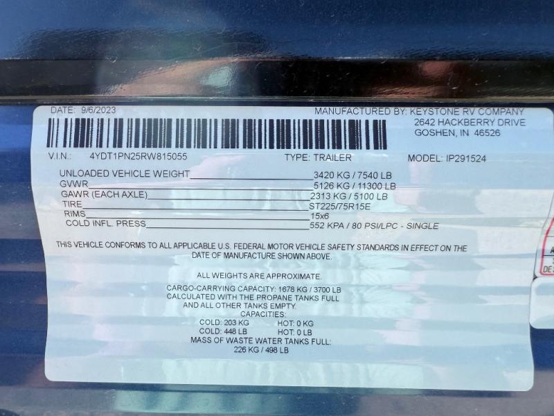 | Awning Info | 18' Electric with Adjustable Arms, Auto Dump, LED Lights |