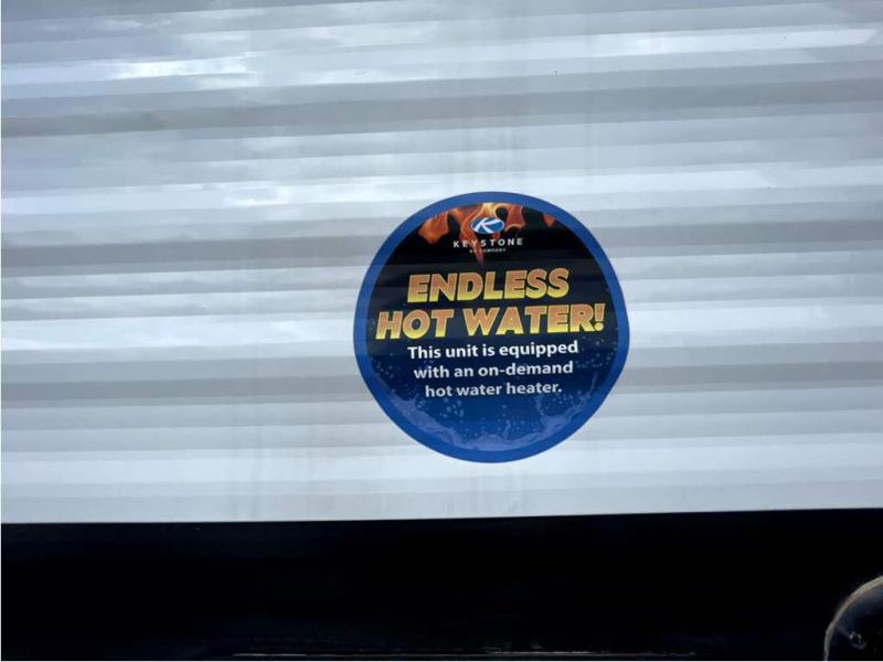With any Hideout Sport travel trailer by Keystone you will enjoy simplified camping solutions that won't break the bank! Each model is constructed with a durable aluminum exterior, tinted safety glass windows, a walkable roof, and an I-beam frame. There are power tongue jacks and electric stabilizer jacks that will make it easier than ever to hitch up and go, and you can add the optional spare tire kit in case you have any unfortunate flats on the way to the campground. An XL entry assist handle will also provide convenience, along with a power awning that will provide much wanted shade during the day. You will feel right at home in a Hideout Sport with its stylish decor, blackout night shades, and cozy queen bed with storage underneath!