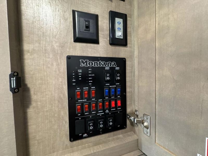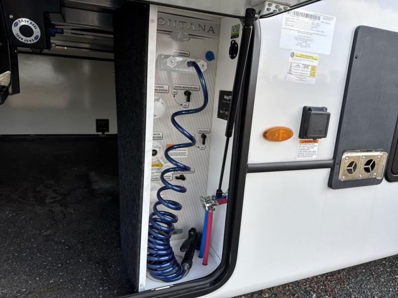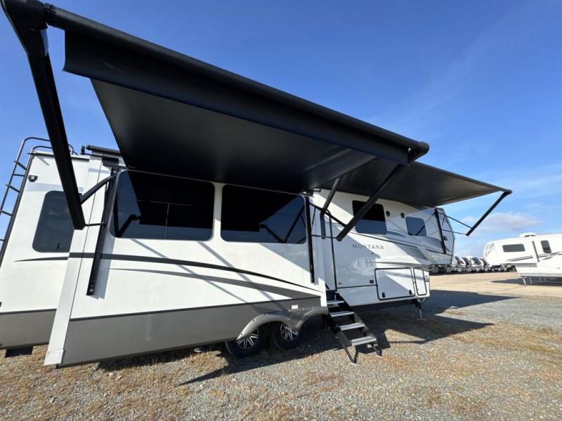 Enjoy luxury, innovation, and the outdoors in any one of Montana's finest fifth wheels. Each set the standard with exceptional features, and exciting factory installed options to provide you a great home on the road. Keystone's exclusive 12" I-beam chassis with z-frame technology has been reengineered to be stronger, lighter and built for "the long haul". A few other construction features you will appreciate include a Road Armor suspension, 2" thick, dual-layered lauan high gloss fiberglass sidewalls, a MaxTurn front cap with KeyShield automotive-grade paint, and a fully walkable roof with an Alpha seamless TPO membrane system. Each feature stylish interiors with two new decor choices paired with beautiful hand-glazed hardwood cabinetry, vinyl flooring throughout, central vacuum, plus a Blade Pure airflow system for clean, quite, and cool air!