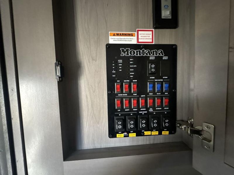 Enjoy luxury, innovation, and the outdoors in any one of Montana's finest fifth wheels. Each set the standard with exceptional features, and exciting factory installed options to provide you a great home on the road. Keystone's exclusive 12" I-beam chassis with z-frame technology has been reengineered to be stronger, lighter and built for "the long haul". A few other construction features you will appreciate include a Road Armor suspension, 2" thick, dual-layered lauan high gloss fiberglass sidewalls, a MaxTurn front cap with KeyShield automotive-grade paint, and a fully walkable roof with an Alpha seamless TPO membrane system. Each feature stylish interiors with two new decor choices paired with beautiful hand-glazed hardwood cabinetry, vinyl flooring throughout, central vacuum, plus a Blade Pure airflow system for clean, quite, and cool air!