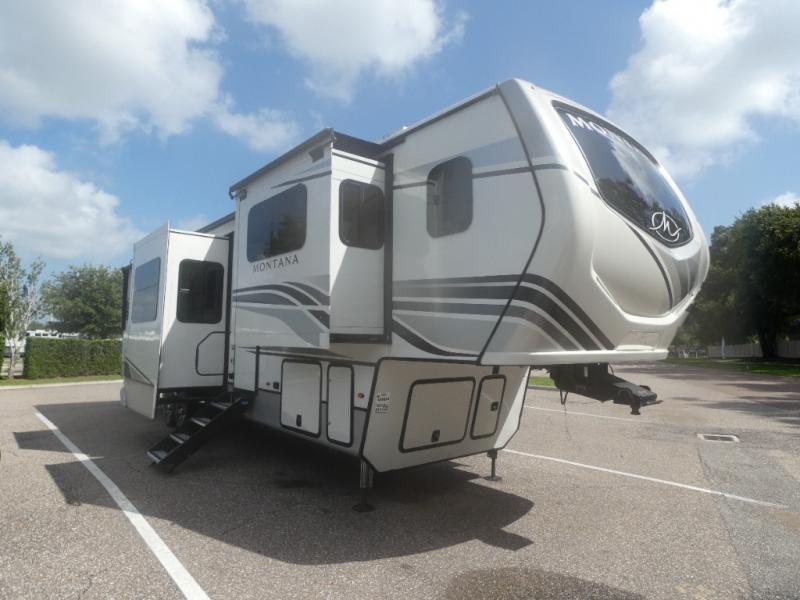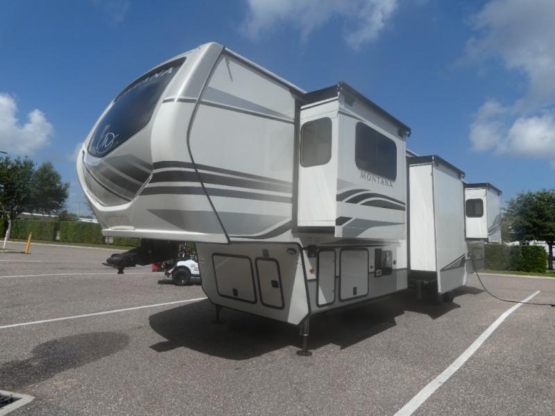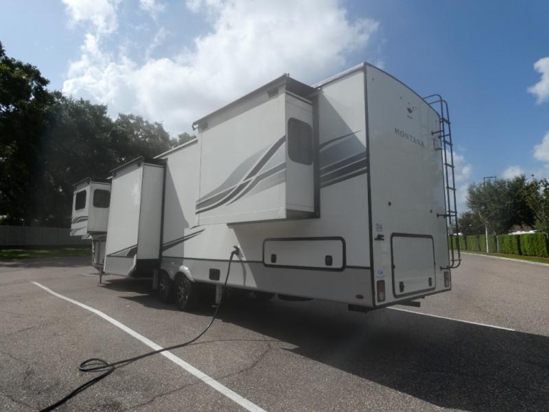 Enjoy luxury, innovation, and the outdoors in any one of Montana's finest fifth wheels. Each set the standard with exceptional features, and exciting factory installed options to provide you a great home on the road. Keystone's exclusive 12" I-beam chassis with z-frame technology has been reengineered to be stronger, lighter and built for "the long haul". A few other construction features you will appreciate include a Road Armor suspension, 2" thick, dual-layered lauan high gloss fiberglass sidewalls, a MaxTurn front cap with KeyShield automotive-grade paint, and a fully walkable roof with an Alpha seamless TPO membrane system. Each feature stylish interiors with two new decor choices paired with beautiful hand-glazed hardwood cabinetry, vinyl flooring throughout, central vacuum, plus a Blade Pure airflow system for clean, quite, and cool air!