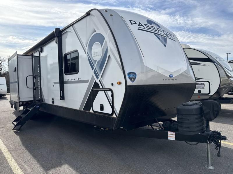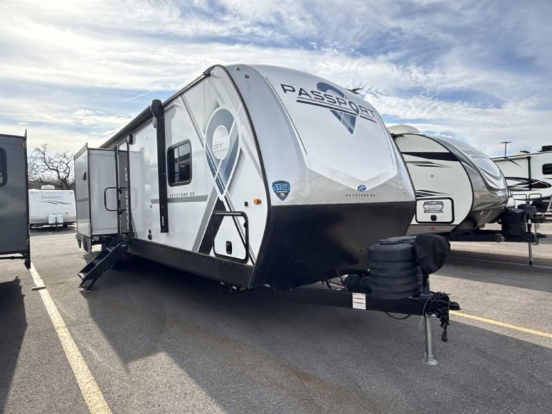 Each one of these Keystone RV Passport GT travel trailers offer grand style and multi-functional features! They have best-in-class storage for big things like paddle boards and small things like sleeping bags. There's no need for cordless drills and bending over to put the jacks down, simply push a button and the power stabilizer jacks do the rest. The one piece polypropylene underbelly protects your units vitals in all weather conditions. Exclusive to Keystone is the Tru-fit slide construction and the Hyper Deck flooring which is more resilient, stronger and lighter than the traditional laminated wood construction, plus it resists water and water damage. In-floor heating ducts help to heat the unit with the 30,000 BTU furnace and the color-coded unified wiring makes it easier to see where they connect to. Come find the one that best fits your needs today!