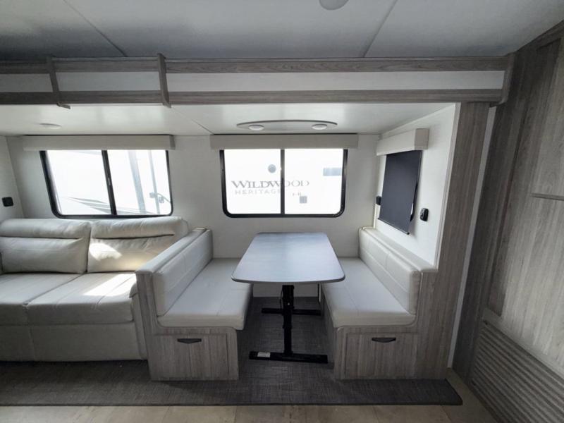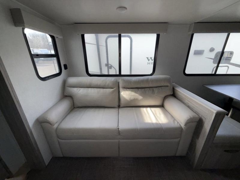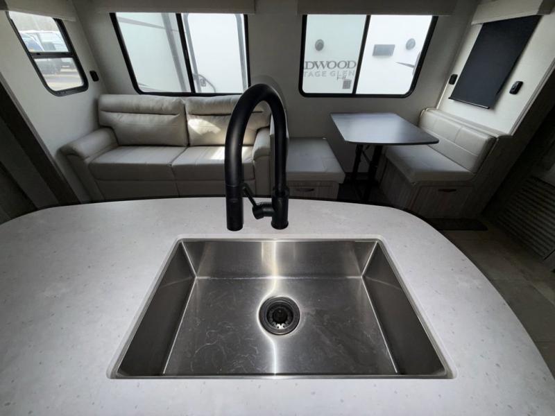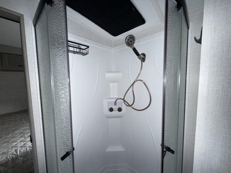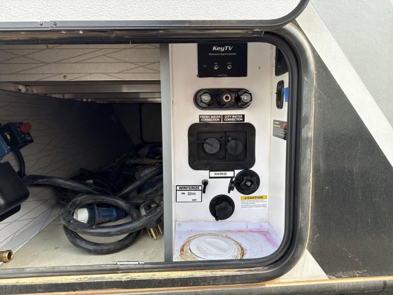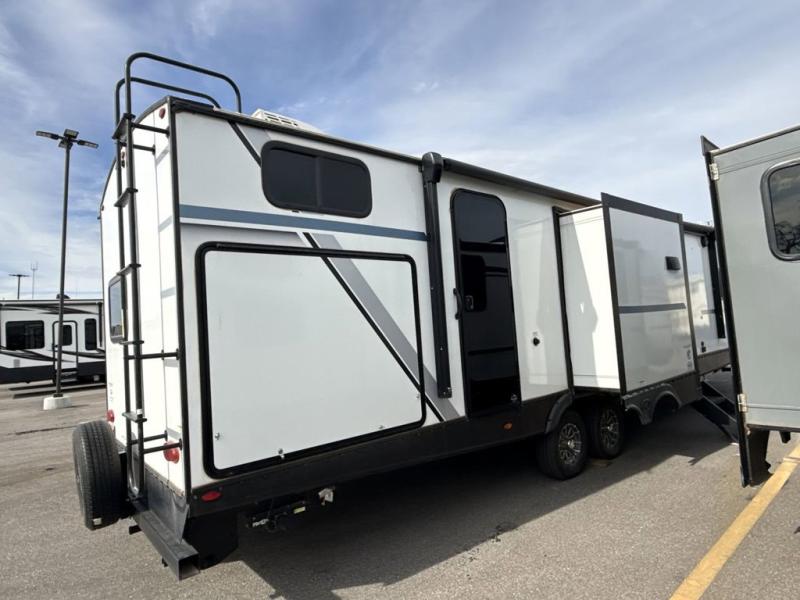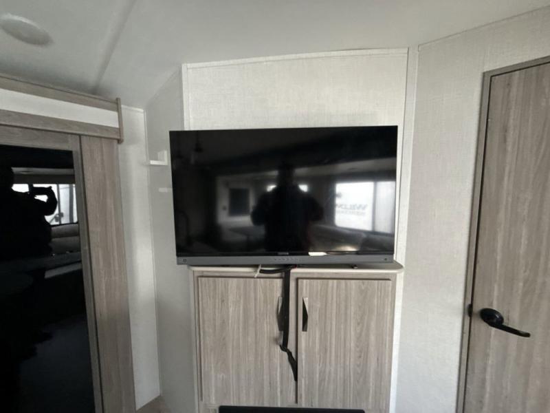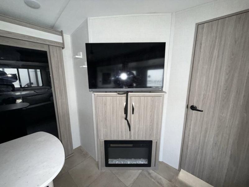 You won't believe all that this travel trailer has to offer! Starting with the rear private bunkhouse which has a 28" x 74" flip-up bunk above a 68" tri-fold sofa, a 51" x 74" bunk above an entertainment center, and even a half bathroom which has one of the dual entry doors to the unit. The front private bedroom has a queen bed to lay your head on at night with wardrobes on either side and a laundry chute to place your dirty clothes. As you exit the bedroom, you will enter the walk-through bathroom. Now that you're ready for the day, you can head to the fully equipped kitchen complete with a kitchen island to whip up some delicious cinnamon rolls that can be enjoyed at the dream dinette. You even have an outside kitchen with a capital grill, a 4.4 cu. ft. refrigerator, and a sink!