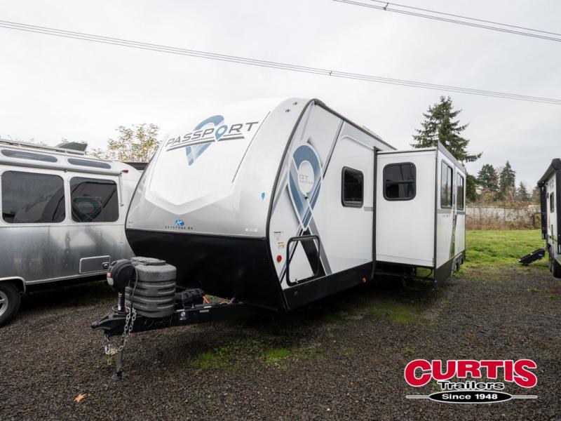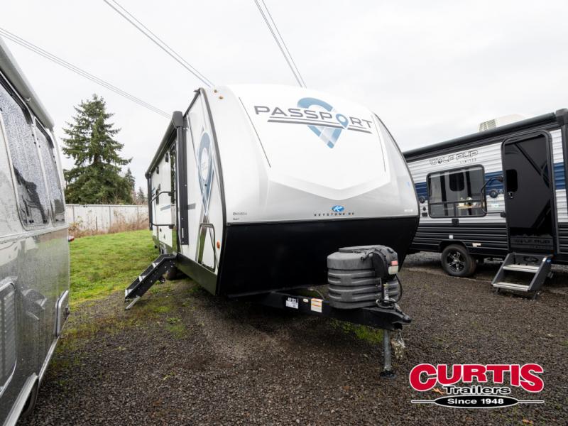 Each one of these Keystone RV Passport GT travel trailers offer grand style and multi-functional features! They have best-in-class storage for big things like paddle boards and small things like sleeping bags. There's no need for cordless drills and bending over to put the jacks down, simply push a button and the power stabilizer jacks do the rest. The one piece polypropylene underbelly protects your units vitals in all weather conditions. Exclusive to Keystone is the Tru-fit slide construction and the Hyper Deck flooring which is more resilient, stronger and lighter than the traditional laminated wood construction, plus it resists water and water damage. In-floor heating ducts help to heat the unit with the 30,000 BTU furnace and the color-coded unified wiring makes it easier to see where they connect to. Come find the one that best fits your needs today!