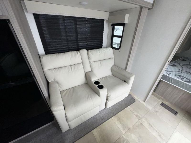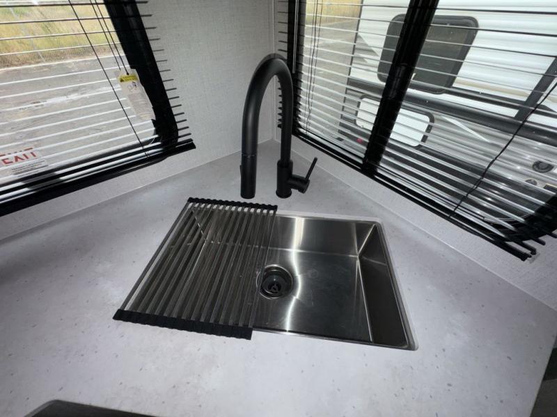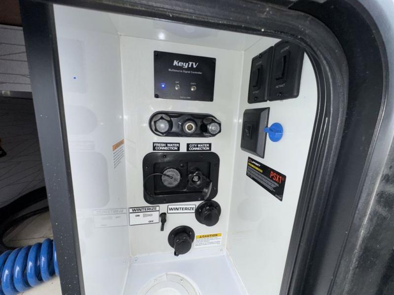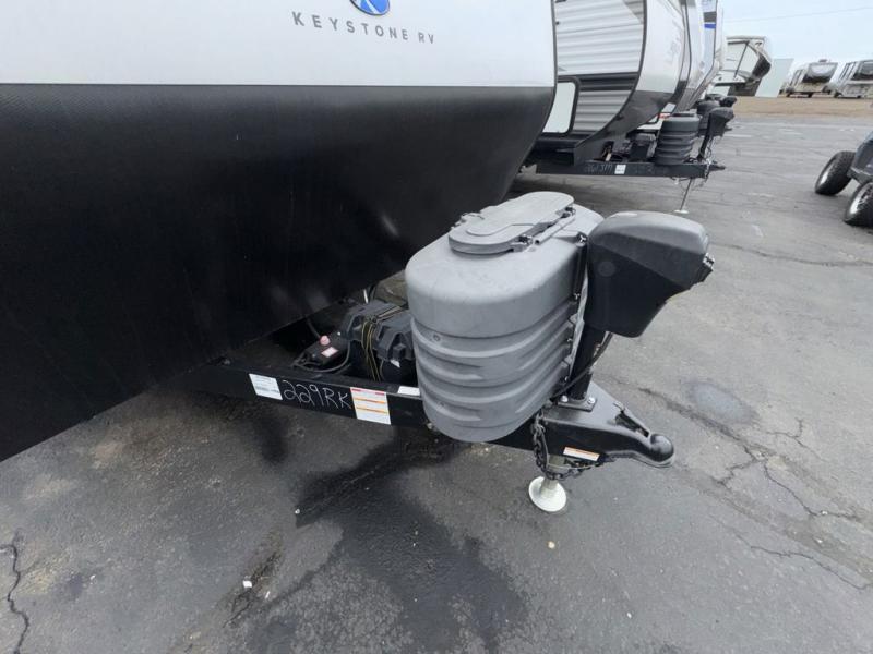With any Keystone Passport SL you will enjoy lightweight towing and lots of interior comforts! The power tongue jack lets you hitch up at the drop of a hat, and the Dexter torsion axle rubber ride suspension will make towing easier than ever. You will appreciate having power stabilizer jacks for quick setup and an exterior convenience center to monitor tank levels. These trailers are constructed with a seamless, laminated and gel-coated filon exterior, 80% tinted safety glass windows, and a one-piece polypropylene underbelly. The interior will have you feeling right at home with residential durable Beauflor vinyl flooring, deluxe night shades, LED lighting throughout, and seamless kitchen countertops to name a few comforts.