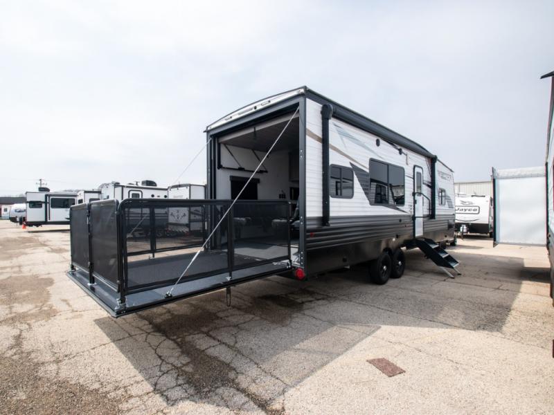 Keystone Raptor Carbon Series toy hauler aluminum travel trailer 29WFO highlights: