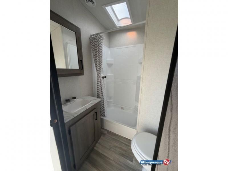 Load up your favorite off-road riding toys and head to your favorite trails, dunes, or competition rally with family and friends. This unit sleeps six with the RV queen bed in front and the dual roll over sofas and bonus bunk in back. The 13' garage with 5K inter-lock system tie downs will get all of your cargo safely to your destination. Once in camp, the rear ramp door will help you easily unload and then set up the sofas with table in between. A full kitchen allows you to refuel your bodies easily by providing a three burner range and 17" black oven, a 10.7 cu. ft. 12V refrigerator for your perishables, and a residential microwave oven to heat up leftovers. The full bath will allow everyone to easily clean up after a full day of fun, and you will enjoy the private front bedroom with an RV queen bed and a full closet for all of your things. On the outside, an 18' power awning provides added living space, or you might like to add the optional patio package for a raised extension of your unit giving you an outdoor space to enjoy.