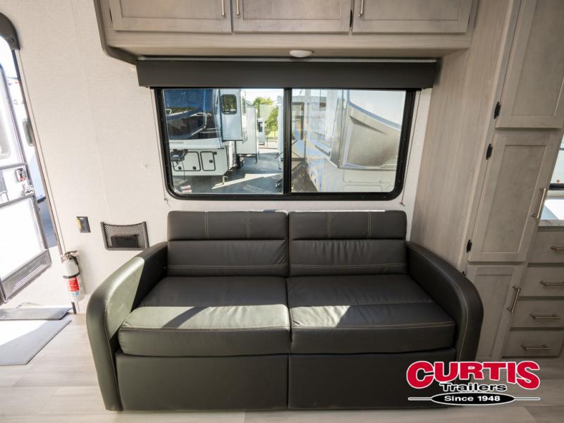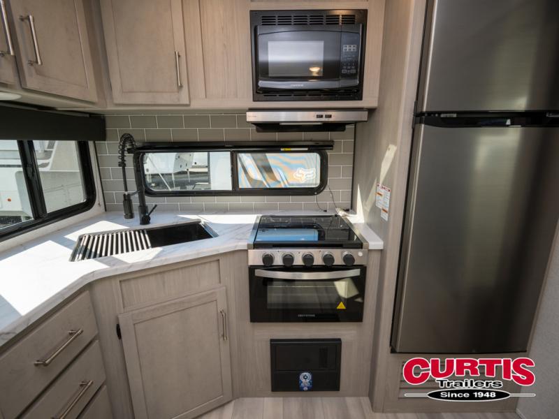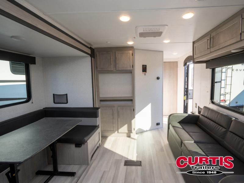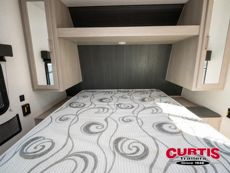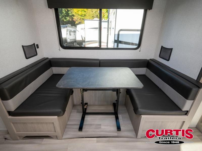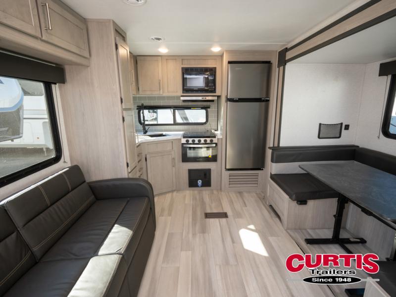 Camp whenever you like with this easy to set up single slide out trailer that is cozy for a couple or even a family when you utilize the furniture as sleeping space. You will love having a U-shaped dinette and a tri-fold sleeper sofa because they can both be used for seating during the day while relaxing, playing games, and enjoying one another's company. The rear kitchen offers the cook their own area when making meals, and the pantry and refrigerator are nearby to grab ingredients. You will love having your own walk-around queen bed in the front master suite with easy access to the full bathroom, and plenty of storage in the closets and double shelves overhead.