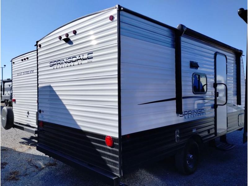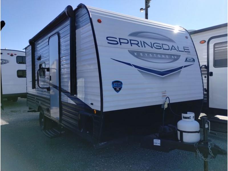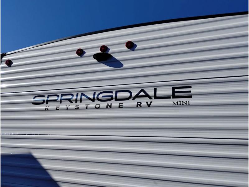 With any Springdale Classic Mini travel trailer by Keystone, you will enjoy lightweight towing thanks to their single-axle! You'll find the XL entry assist handle will make entering and exiting your unit easier than ever, and the power awning will provide protection from the sun as you relax in your camp chairs outside. The interior is made bright and open thanks to the LED lighting and each model includes cozy sleeping space, ample storage, and seating spaces for your crew. There are also additional features found on select models, so come take a look!