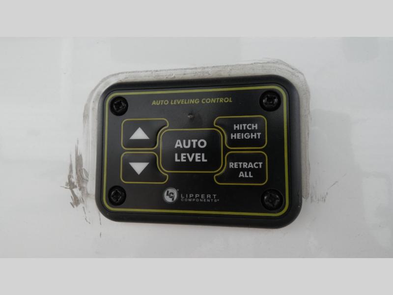 Enjoy a home away from home with this fifth wheel! The front private bedroom has an electric tilt king bed slide for extra comfort, a dresser with a TV, and a front closet with washer and dryer prep next to a built-in hamper so it will be easy to transfer your dirty clothes into the washer. Freshen up each morning in the full bathroom with the 48" x 30" residential shower with a seat. The chef will love cooking in the kitchen with the four burner range with 24" oven and love the dishwasher even more for easy clean ups. There is also a table with booth seating on one side and two chairs on the other to enjoy your meals. You could even cook at the outside griddle too. The rear living area offers a comfortable place to socialize together at night while relaxing on either one of the opposing hide-a-bed sofa slides or the theater seating with USB ports across from the 65" TV with 48" fireplace!