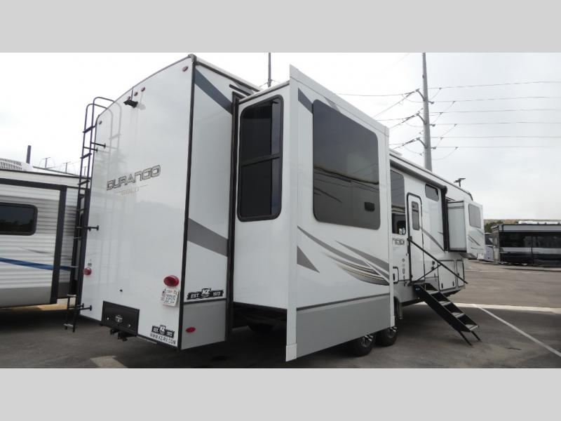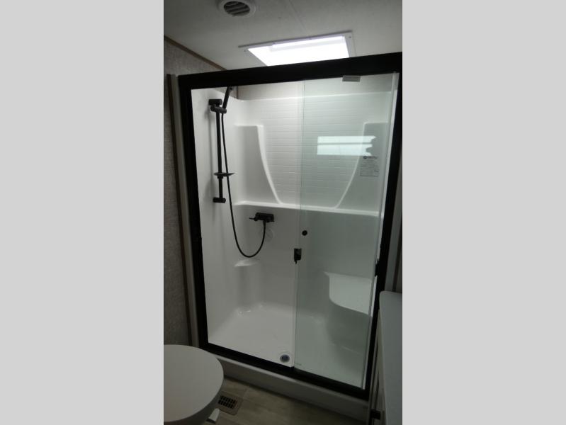 With any KZ Durango Gold full-time luxury fifth wheel, you will enjoy the new Blancher Cherry cabinetry, stainless steel appliances such as a 30" convection microwave and 24" oven with a four burner range, plus a stainless dishwasher. Other top features include an electric tilt bed with Serta Comfort foam king mattress, two 15K A/C units, plus theater seating with powered recline, heat and massage features. You will also appreciate a handy central vacuum system with attachments that stores out of sight. Each Durango Gold is constructed with six-sided aluminum framing, and has a heated, insulated and an enclosed underbelly. It is also constructed with Tufflex roofing material which is flexible, puncture resistant, and reflective. The now standard "Off The Grid" solar package includes two 200W solar panels, a 30A MPPT solar charge controller, and a 2,000W True Sine Wave inverter for off-grid capabilities. If you're wanting to go completely off-grid, you might want to choose the optional Boondocker Solar System with even more features that won't require you to be close to electric hookups!